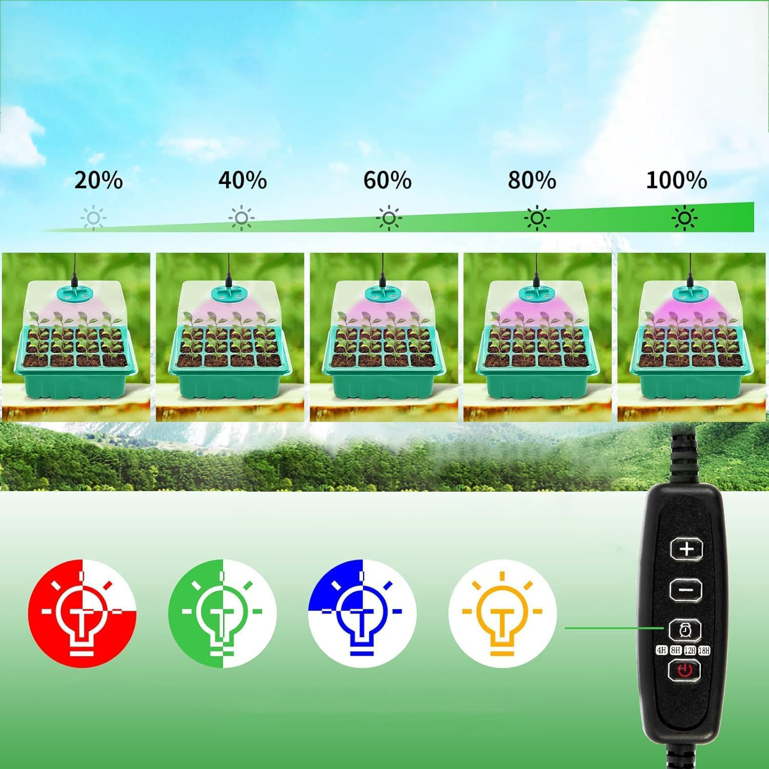 - 4-рівня налаштування таймера може автоматично вимкнути світильники після 4/8/12/18 годин,