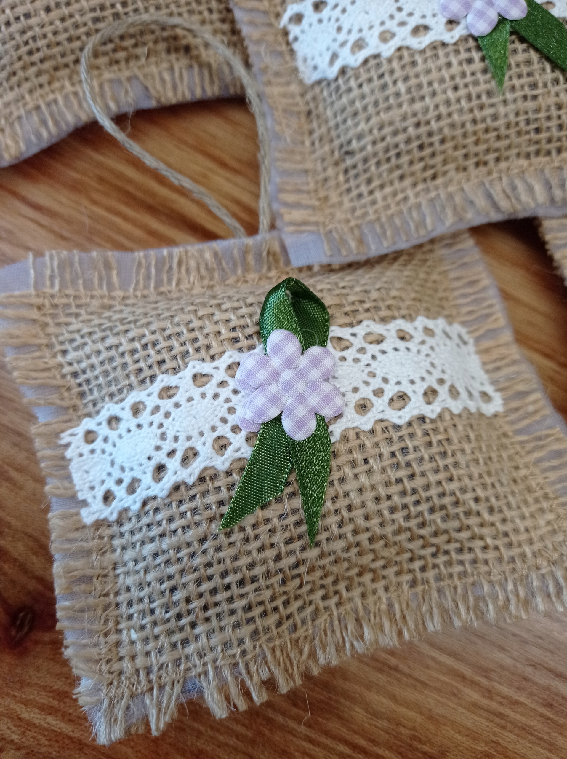 Пакети з сушеною ЛАВАНДОЮ з еко джут, прикрашений мереживом і квіткою, з підвіскою ....