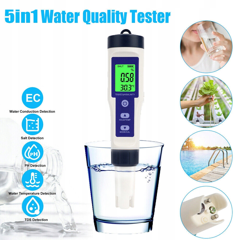 5 в 1 pH/EC/TDS/SALINISION/DIGITY THERMOUMER ТЕСТЕР PH0 ~ 14