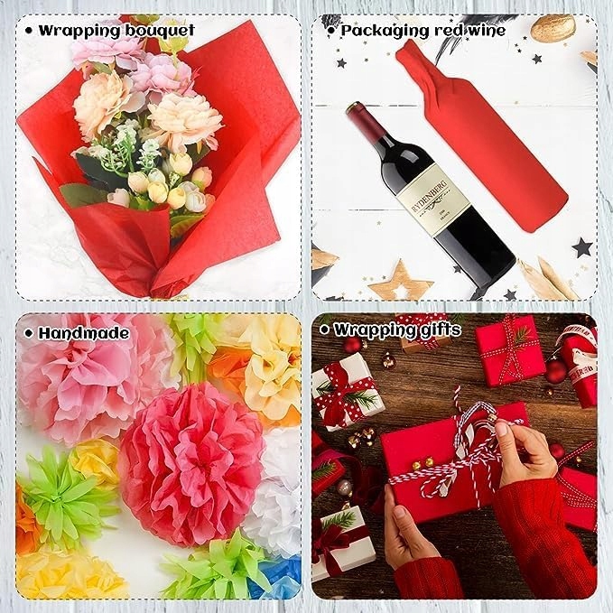 - Упаковка подарунки: Папір хустки - це незамінний елемент вдома, який задовольнить усі ваші потреби, пов’язані з подарунками упаковки. Дайте своїм прикрасам унікальний персонаж завдяки цим барвистим хустці. Ідеально підходить для художніх та ремісничих робіт, паперових проектів, включаючи декупаж, прикраси для вечірок, створення квітів, упаковка подарунків, подарункові пакети та інші потреби.