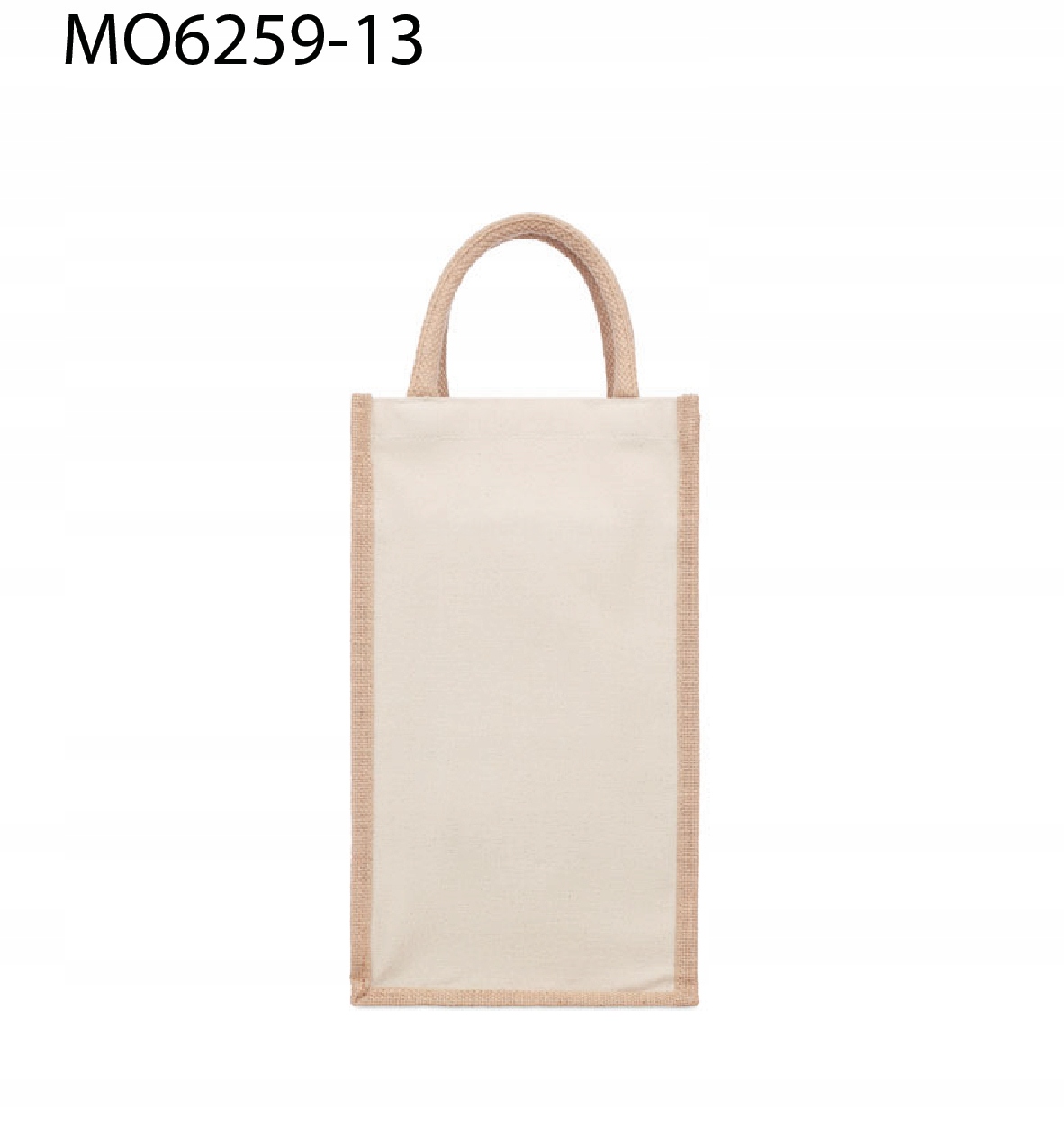 Подарункова сумка для двох пляшок вина з джуту та полотна, 320 гр/м². Здивуйте когось особливого парою смачних вин. Ваш подарунок обов'язково оцінять у цій якісній подарунковій сумці. Винні пляшки не входять.