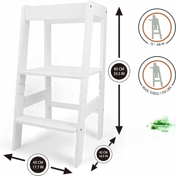 - Застосування: Цей дослідник навчальної вежі виготовлений з високоякісної МДФ і може використовуватися дитиною від 18 до 48 місяців. Максимальне навантаження: до 50 кг. Розміри продукту: 45 x 42 x 85 см (ширина x глибина x висота)