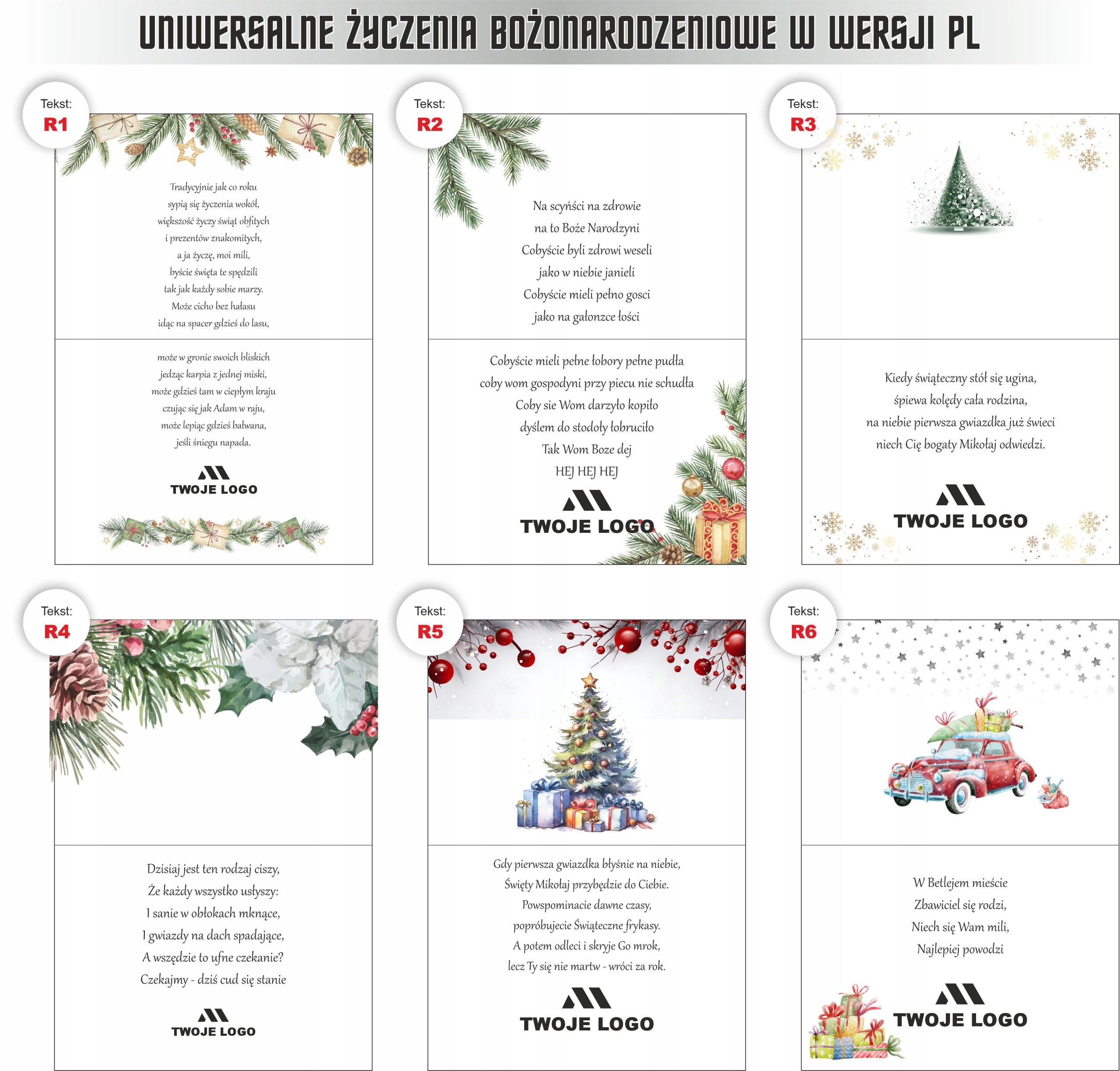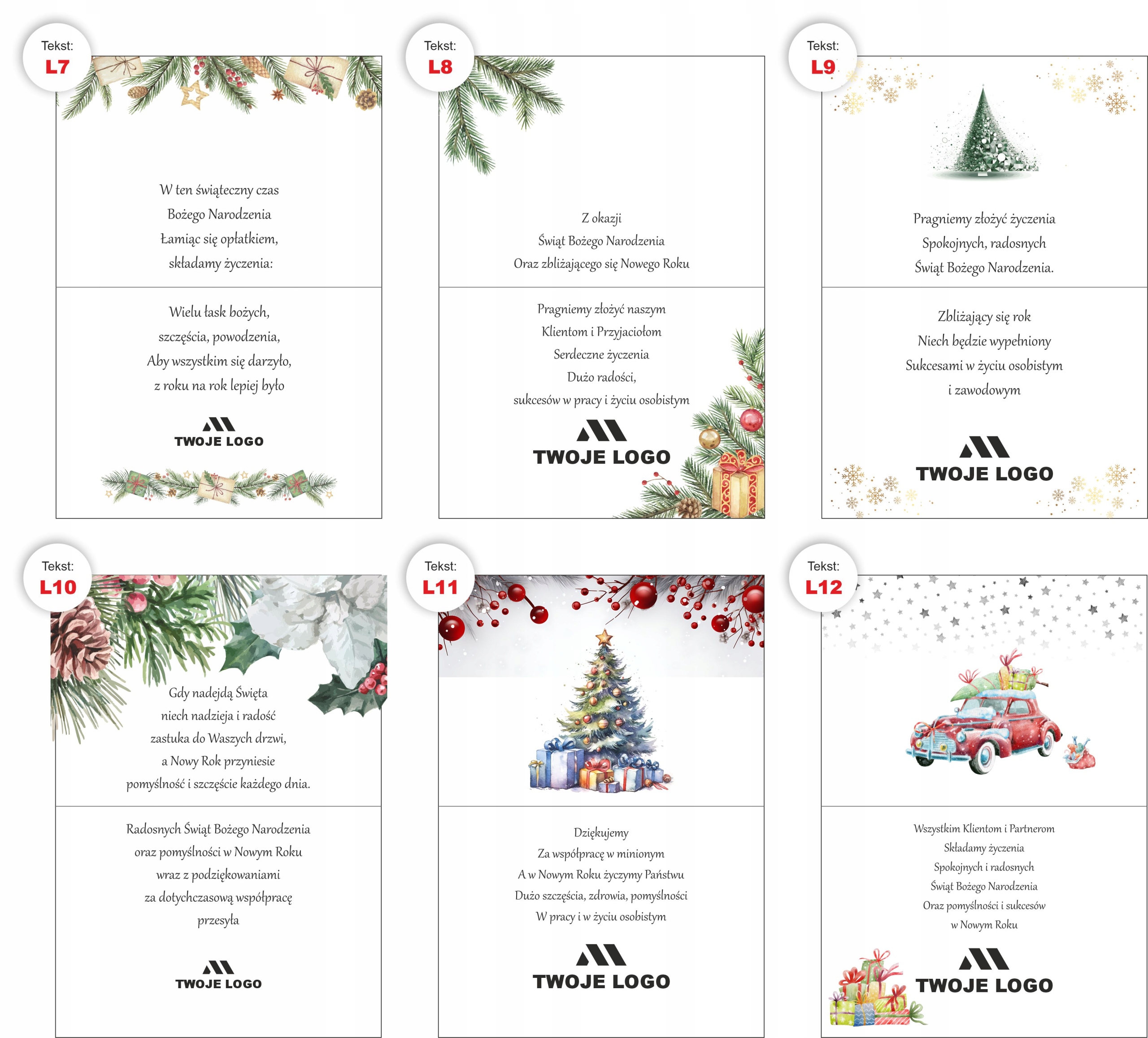50x корпоративні та ділові РІЗДВЯНІ ЛИСТІВКИ ВАШ ЛОГОТИП + КОНВЕРТ 50x