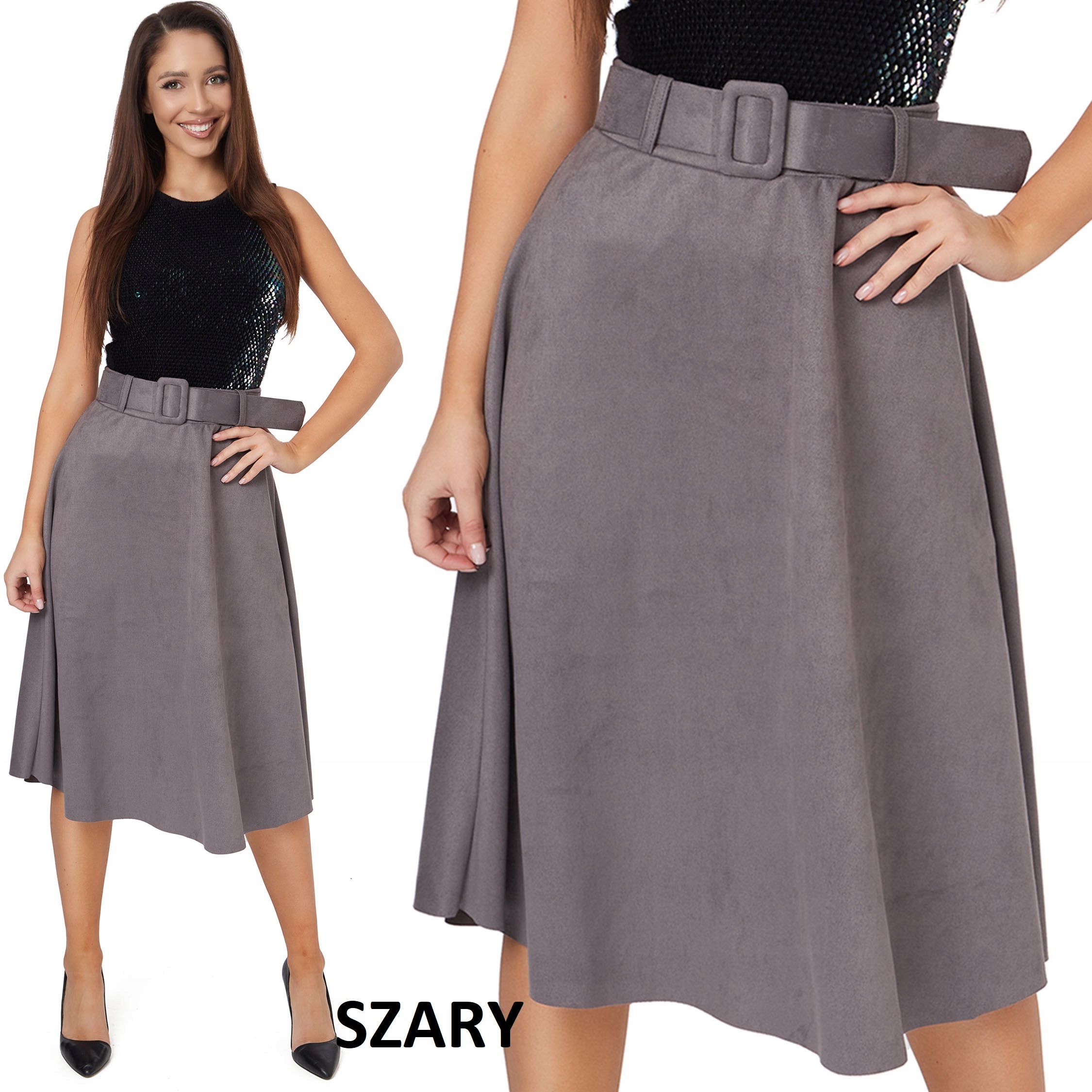 526_ ЕЛЕГАНТНА ЗАМШЕВА СПІДНИЦЯ МІДІ З ПОЯСОМ
