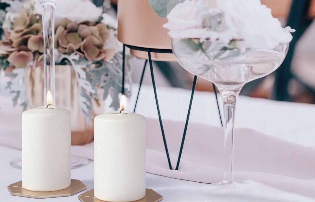 - A циліндрична свічка діаметром до 6 см і висотою 10 см витончена і ефектно виглядає на весільному столі.