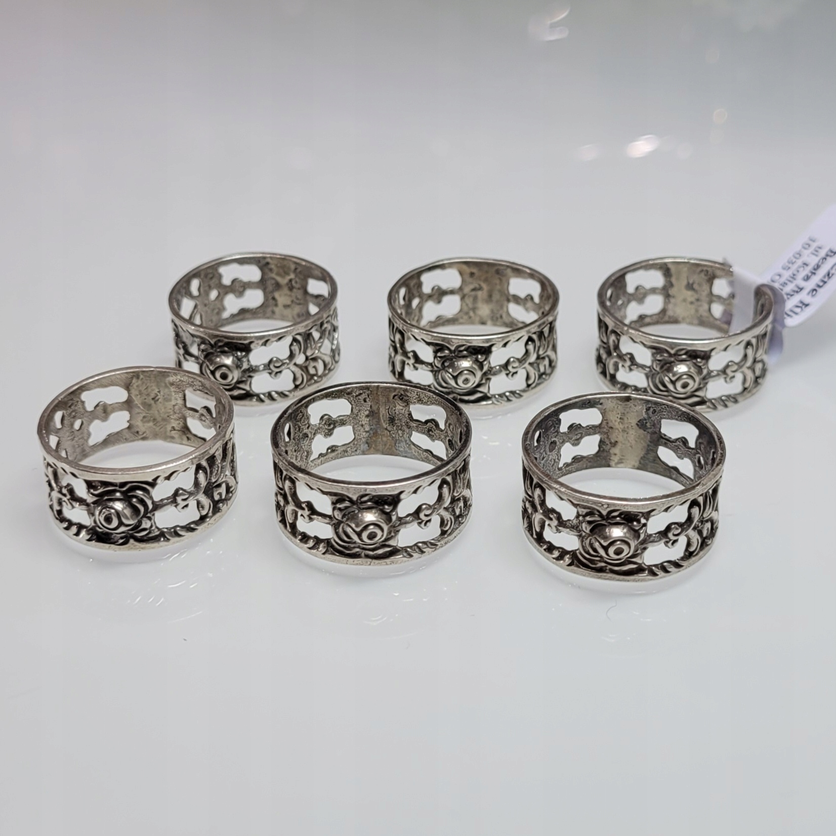 6 шт. ажурні срібні кільця для серветок - срібло пр. 0,835 троянди