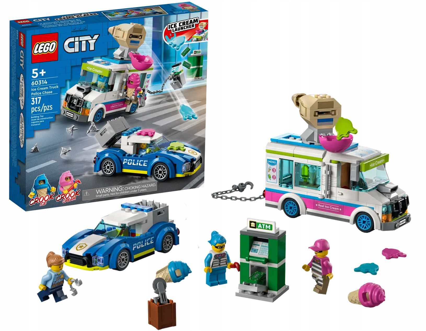 ✅ten 317-елемент Набір має фургон з морозивом, поліцейською машиною, банкоматами та 3 мініфігурами, , включаючи 2 символи з серії Lego® City.