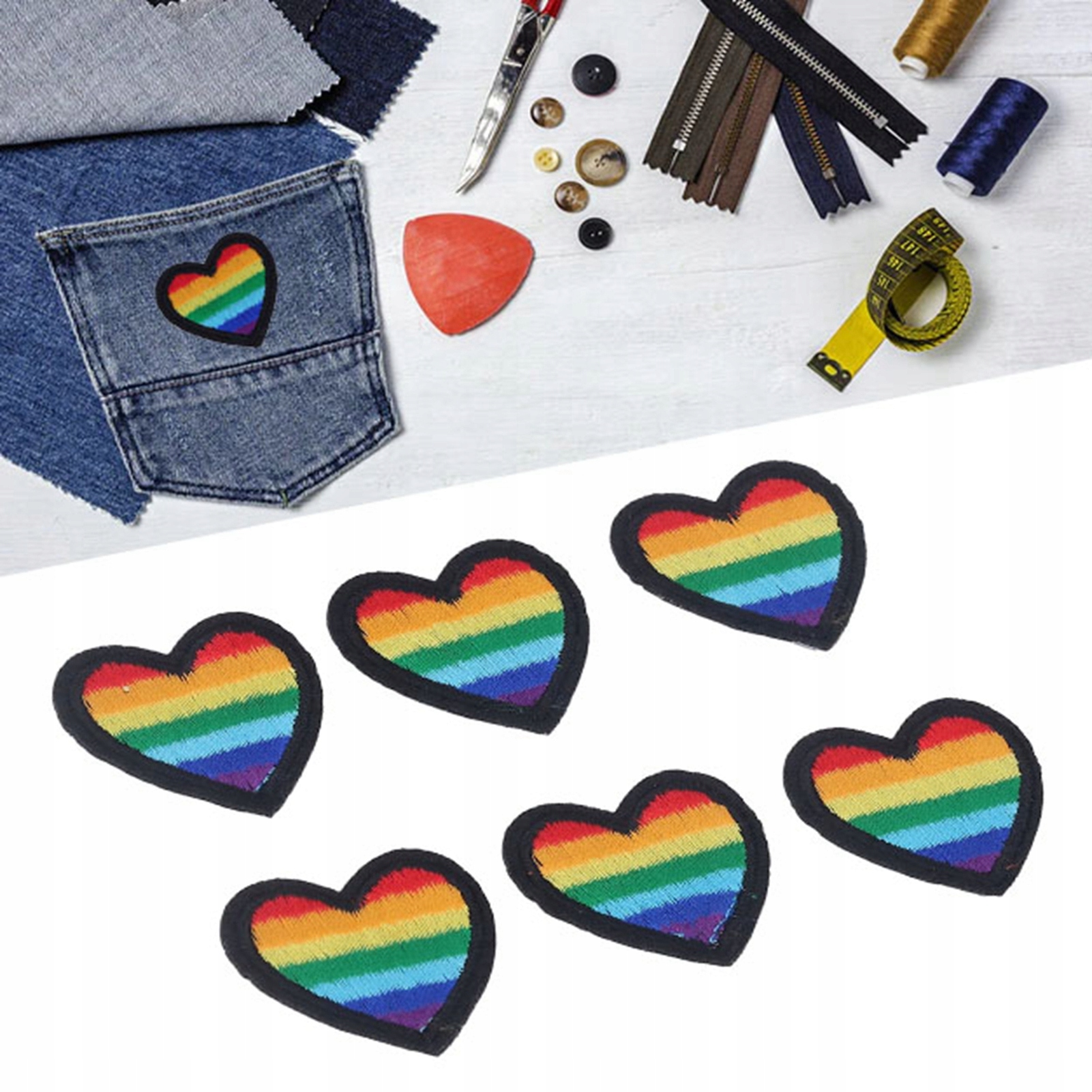 6 шт. Веселкові плями з серцем DIY Веселка Серце Форма Патерка прикраса Haft Clocking Clocking Clock чорні права