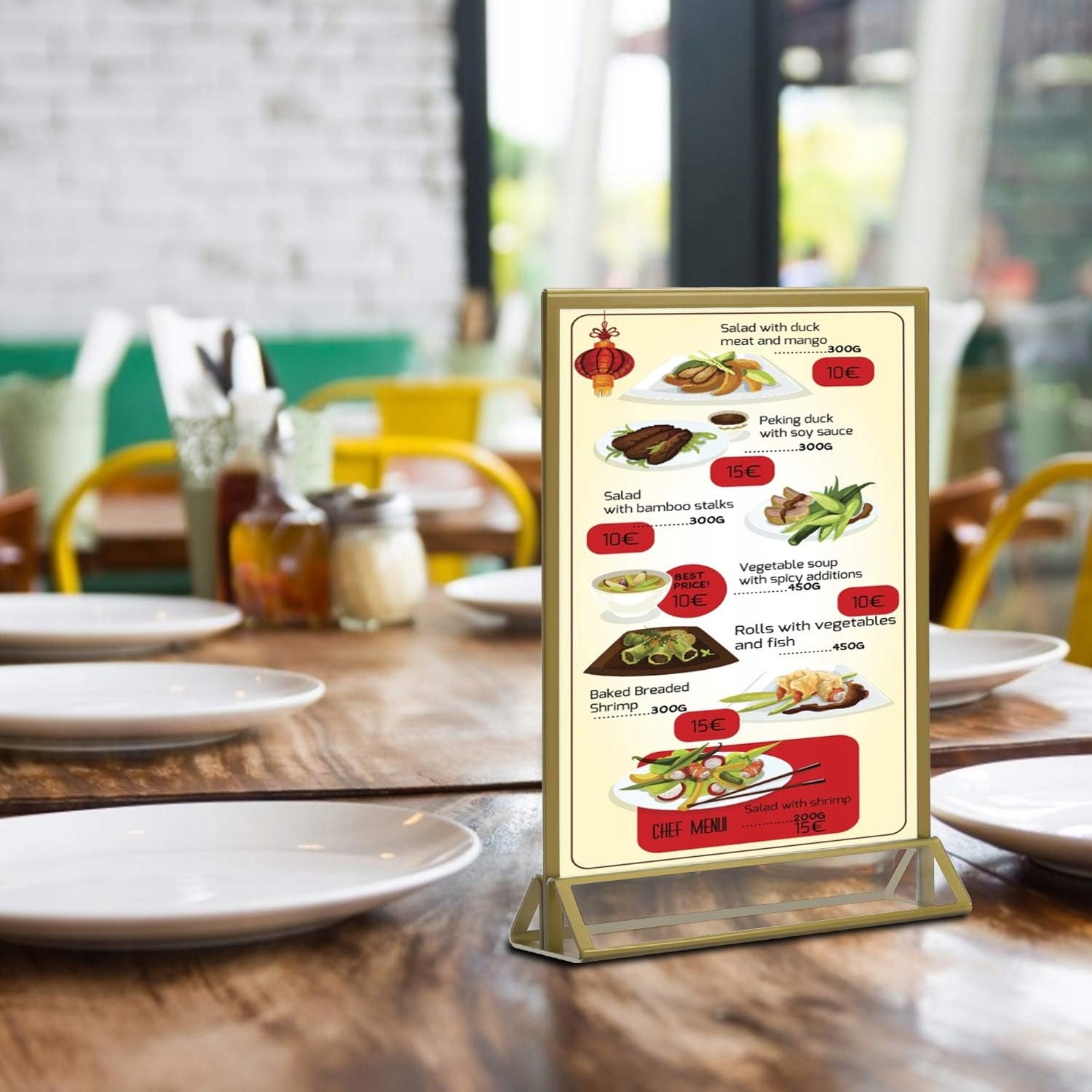 - ШИРОКІ ЗАСТОСУВАННЯ - чудовий спосіб привернути увагу, коли ви хочете відобразити маркетингову рекламу, меню ресторану, рекламні акції , важливі новини або будь-яка особиста фоторамка. Цей дисплейний тримач ідеально підходить для будь-якого ресторану, столу, торгового центру, прикраси дому як фоторамки, весілля, офісу тощо