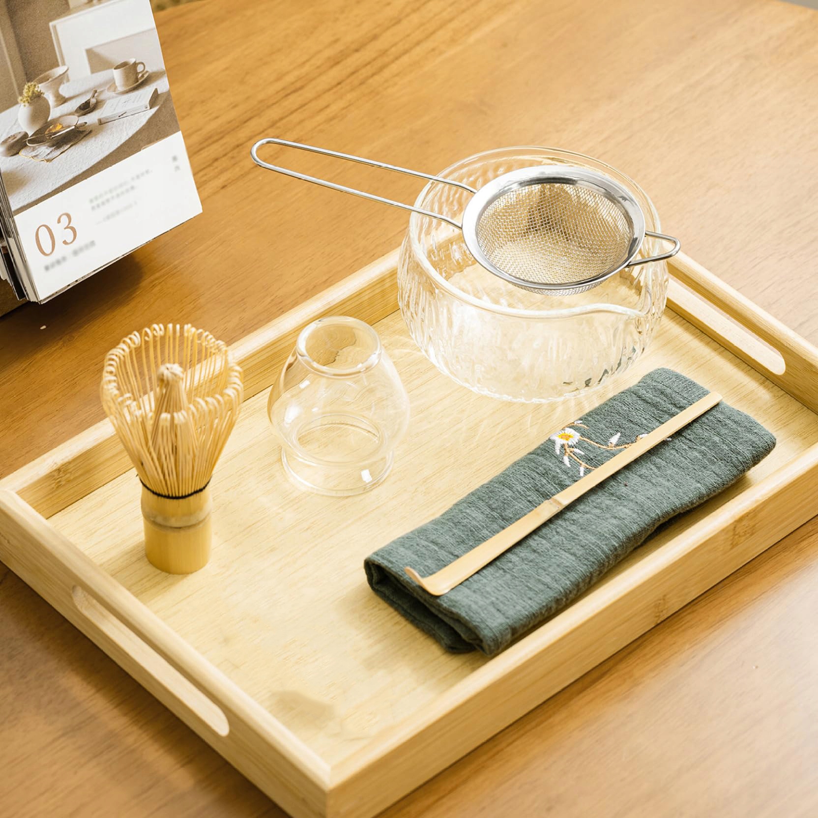 7-частинний набір: Цей набір інструментів Matcha містить сім аксесуарів: 1 віночок матчі, 1 віночок матчі, 1 чайна ложка, 1 чаша Matcha, 1 сито-матча, 1 чашка матчі та 1 тканина. Кожен аксесуар був ретельно підібраний і призначений для задоволення різних потреб для підготовки матчі.