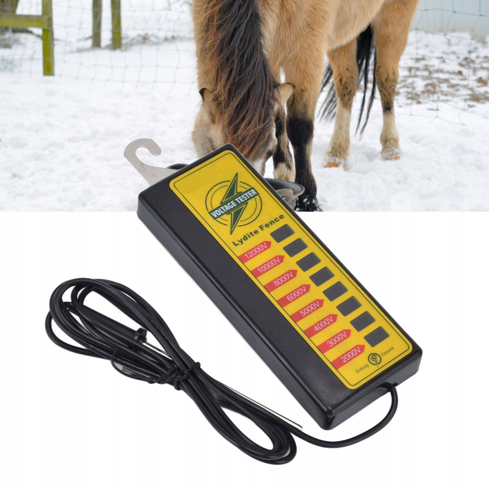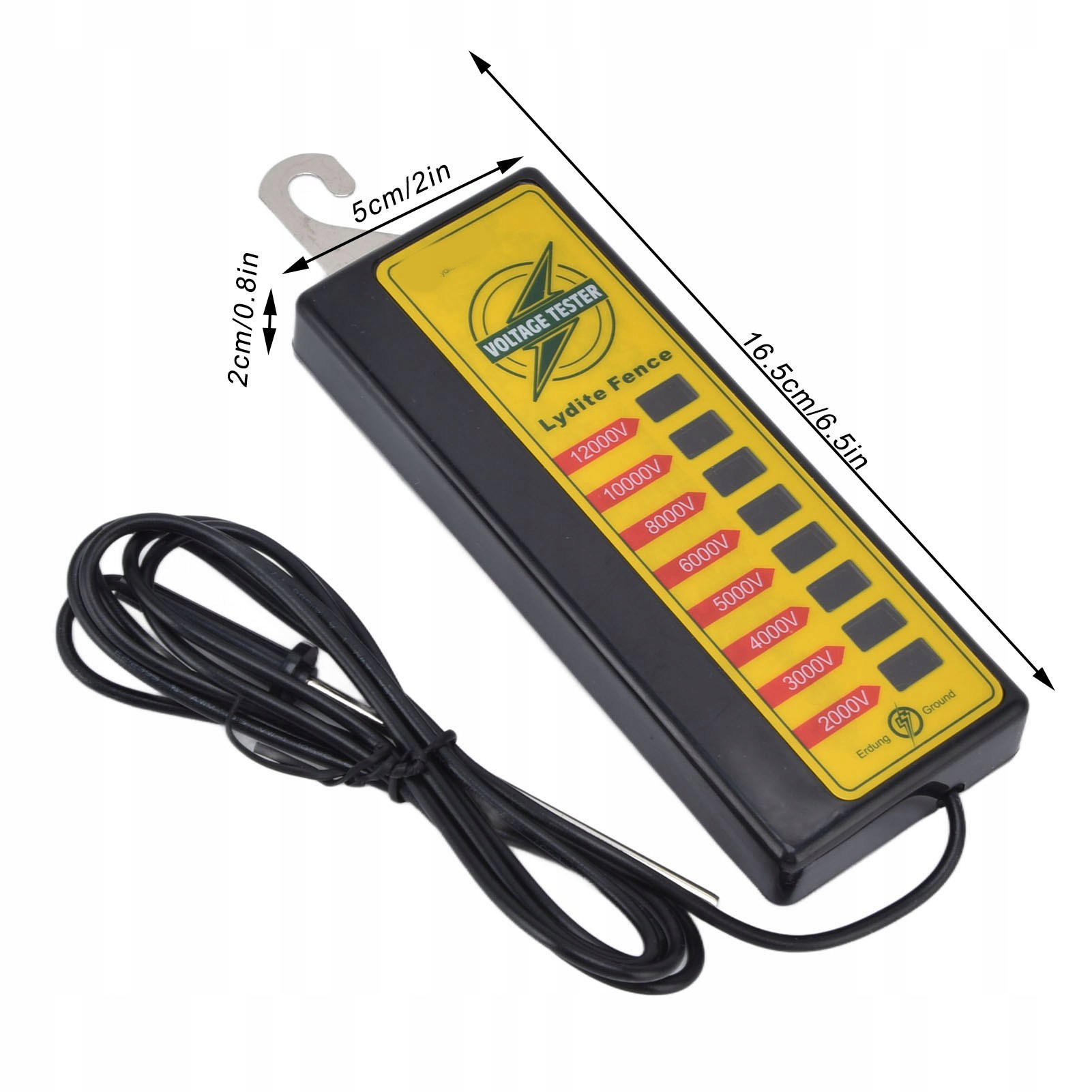 Широкий діапазон застосувань: використовується для вимірювання напруги будь-який металевий дріт, багатожильний дріт, мотузка та стрічка для тестування такого обладнання, як дроти для огорожі, зарядний пристрій, системи заземлення, дроти з гаками та компоненти огорожі, які широко використовуються на фермах, у садах, у загородах для овець, домашніх тварин, коней та худоби.