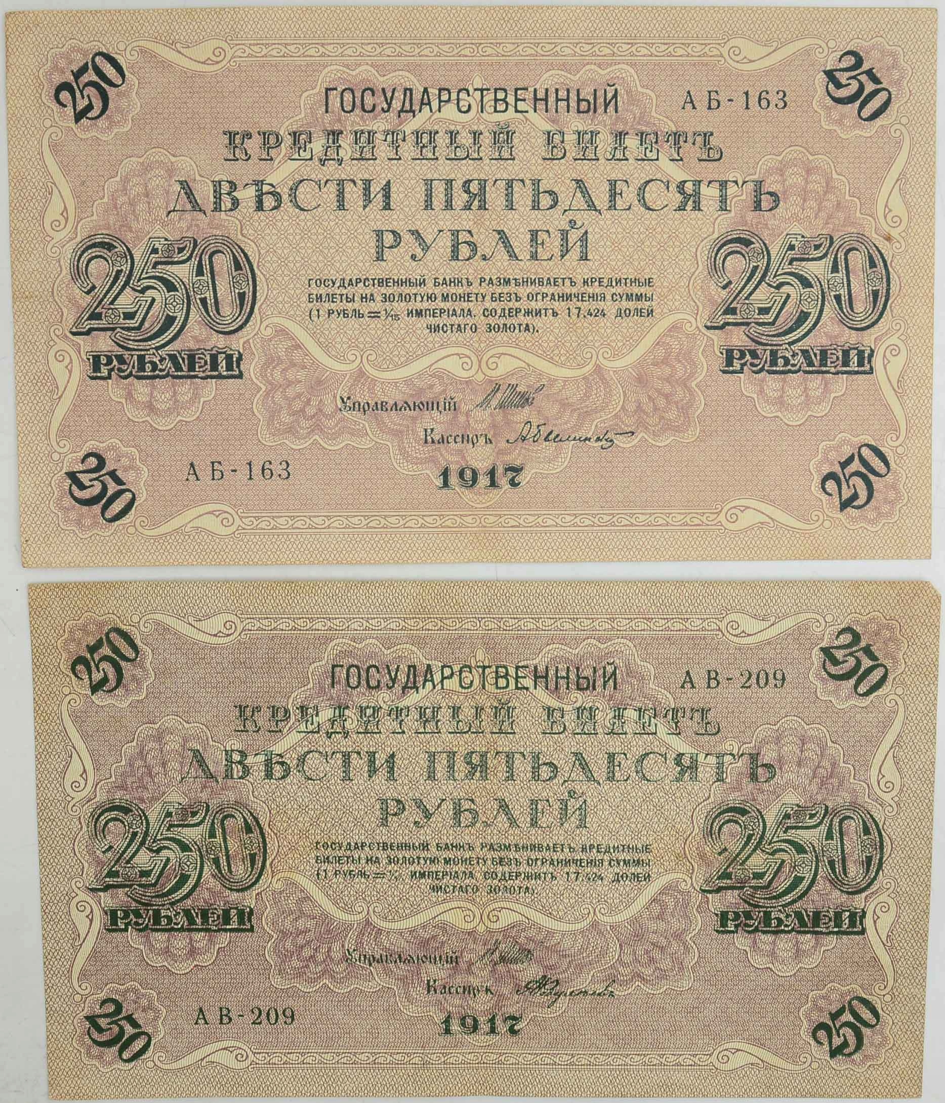 8.db.Zest.Росія, Банкноти 250 Рублів 1917 шт.2