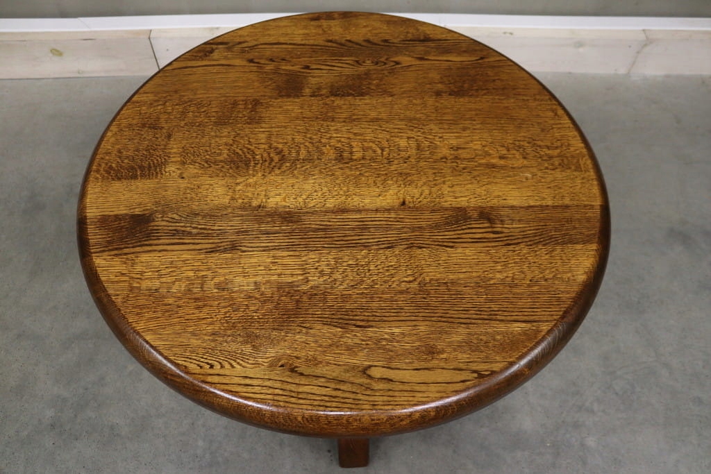 круглий масивний стіл, масивна дубова лавка