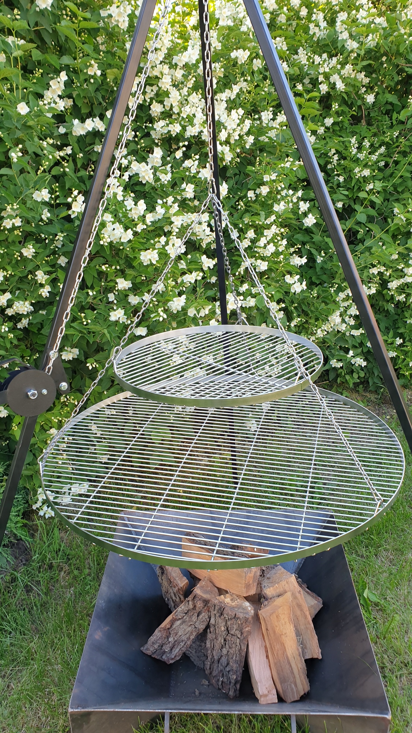 90 СМ КРУГЛА РЕШІТКА ДЛЯ ГРИЛЯ, ТРИНОГА ПІДВІСНА ВОГНЯ ПРЕМІУМ ГАРАНТІЯ