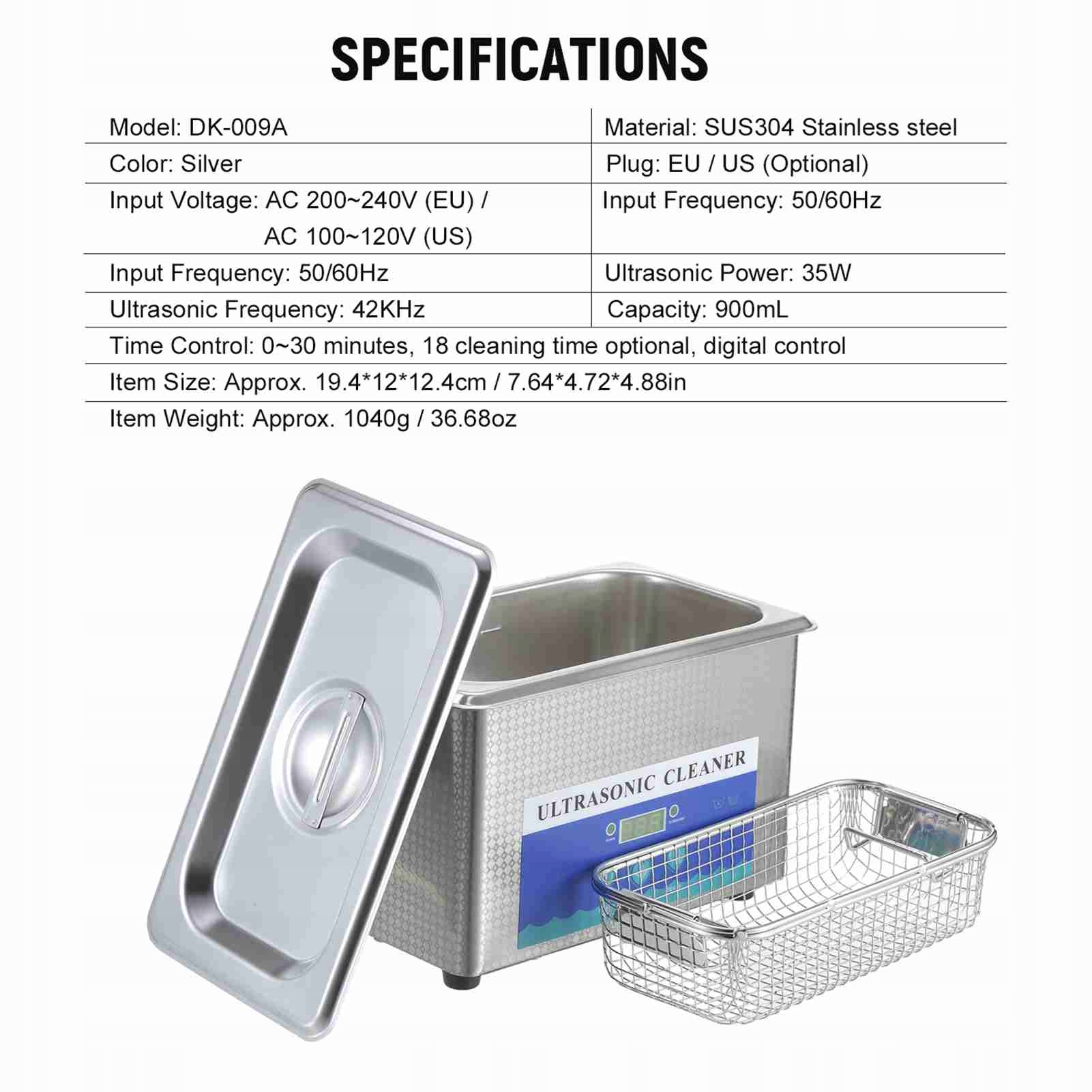 - [Широке застосування] Ідеально підходить для очищення фруктів, голівкових голов, протезів, окулярів, годинників, ювелірних виробів, пензлів для макіяжу, лінз камер, ланцюгів, ланцюгів, електронних компонентів: dk-009a
