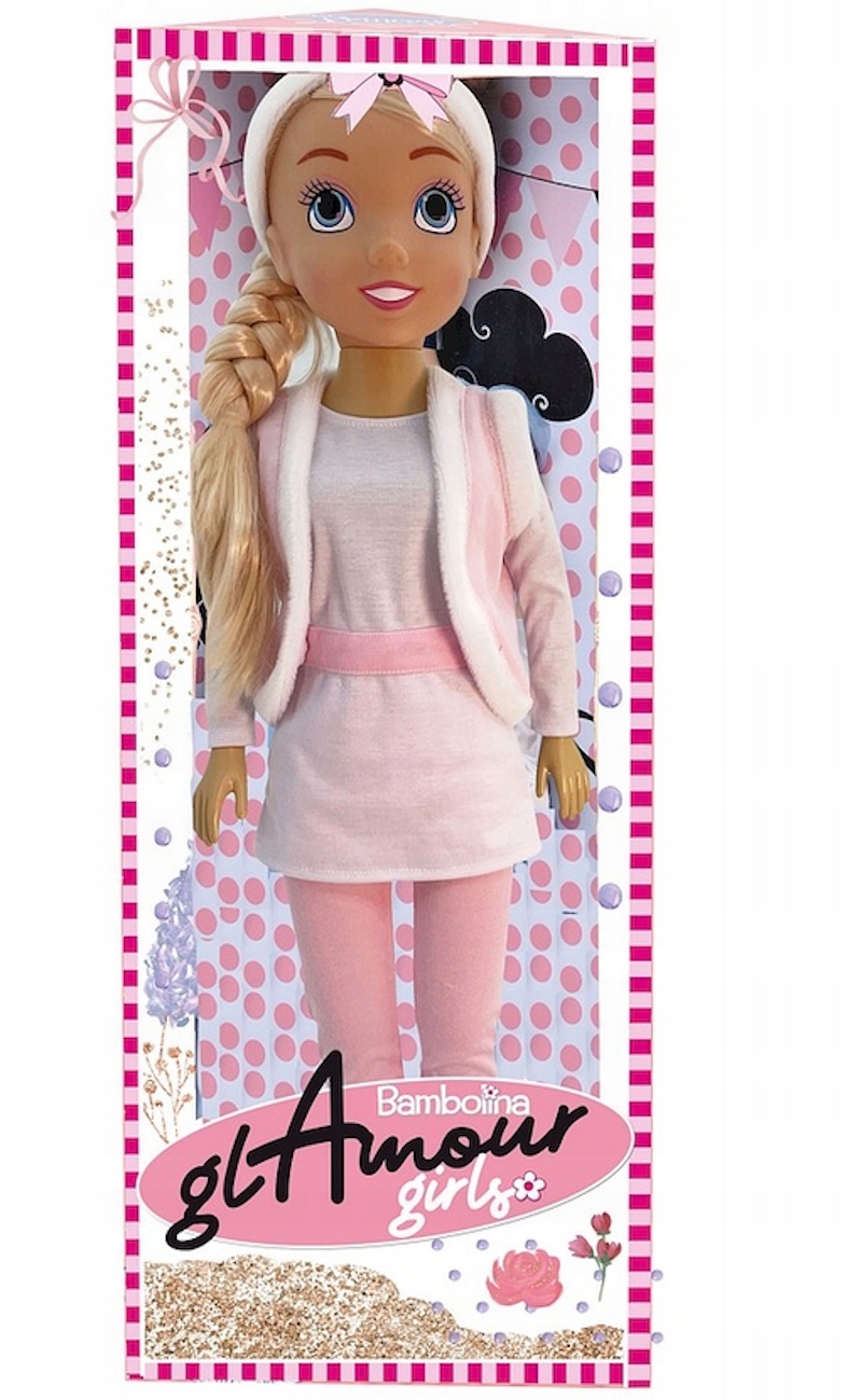 Лялька одягнена в рожеві легінси, туніку, светр і білі. взуття. У неї довге світле волосся, яке ідеально підходить для створення різних зачісок.