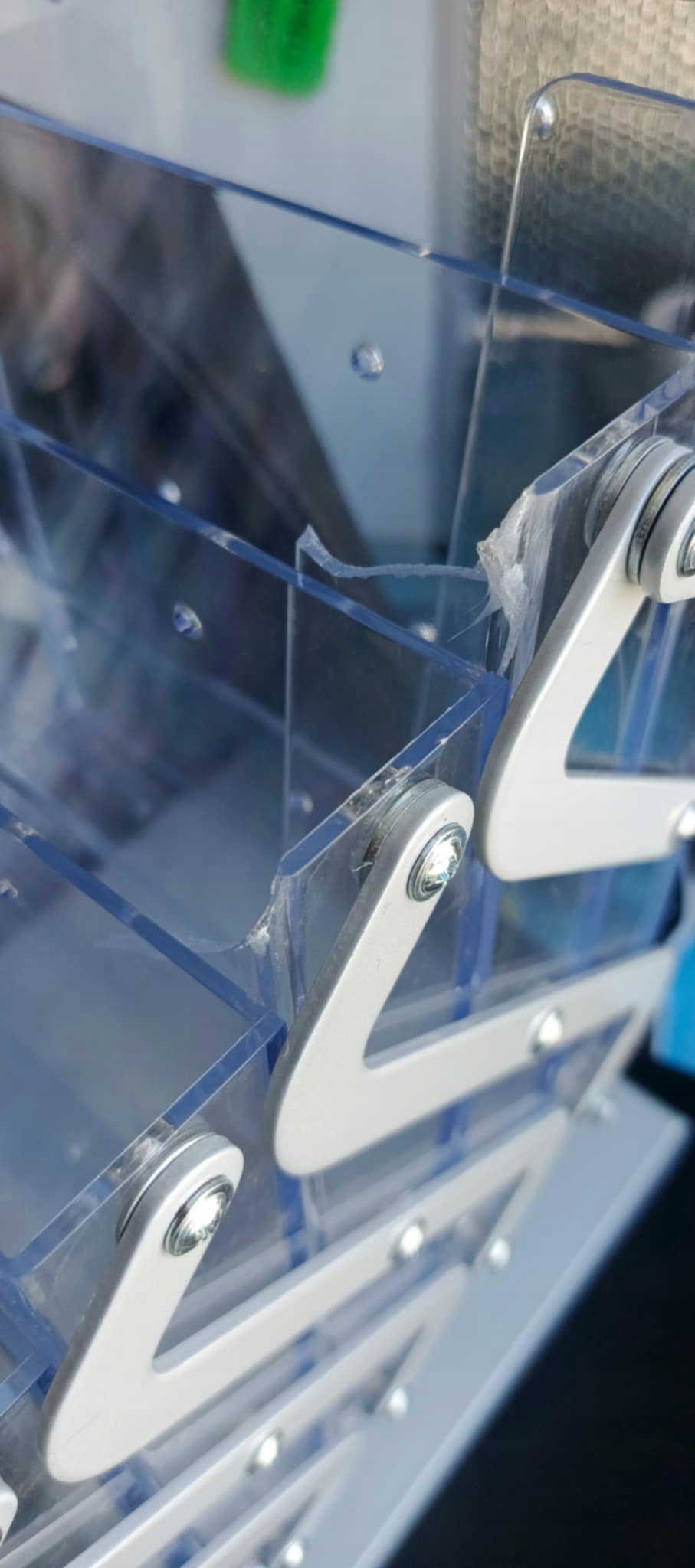 Після надягання стенду листівки дуже стабільно навіть після заповнення. Кожна перспективна коробка з'єднана зі сталевими петлями та болтами з основними лісами і, таким чином, дуже довговічним. Завдяки легким петлям за гвинтами, ліси також зберігаються у випадку з високим громадським трафіком.