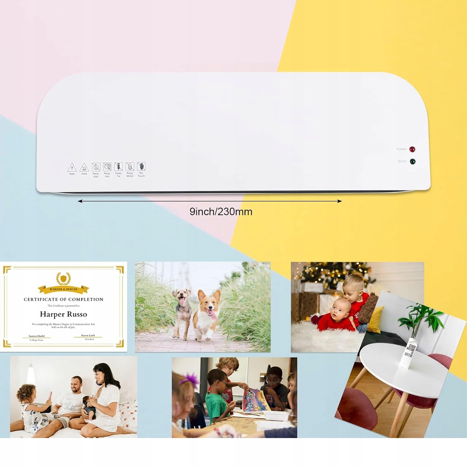 Ламіновані документи можуть бути шириною до 230 мм (A4) і товщиною 0,5 мм. Підходить для фотографій, карт, сертифікатів, дозволів на роботу, меню, зображень тощо, ламінування може краще захистити документи, фотографії та зображення та покращити якість їх кольорів.