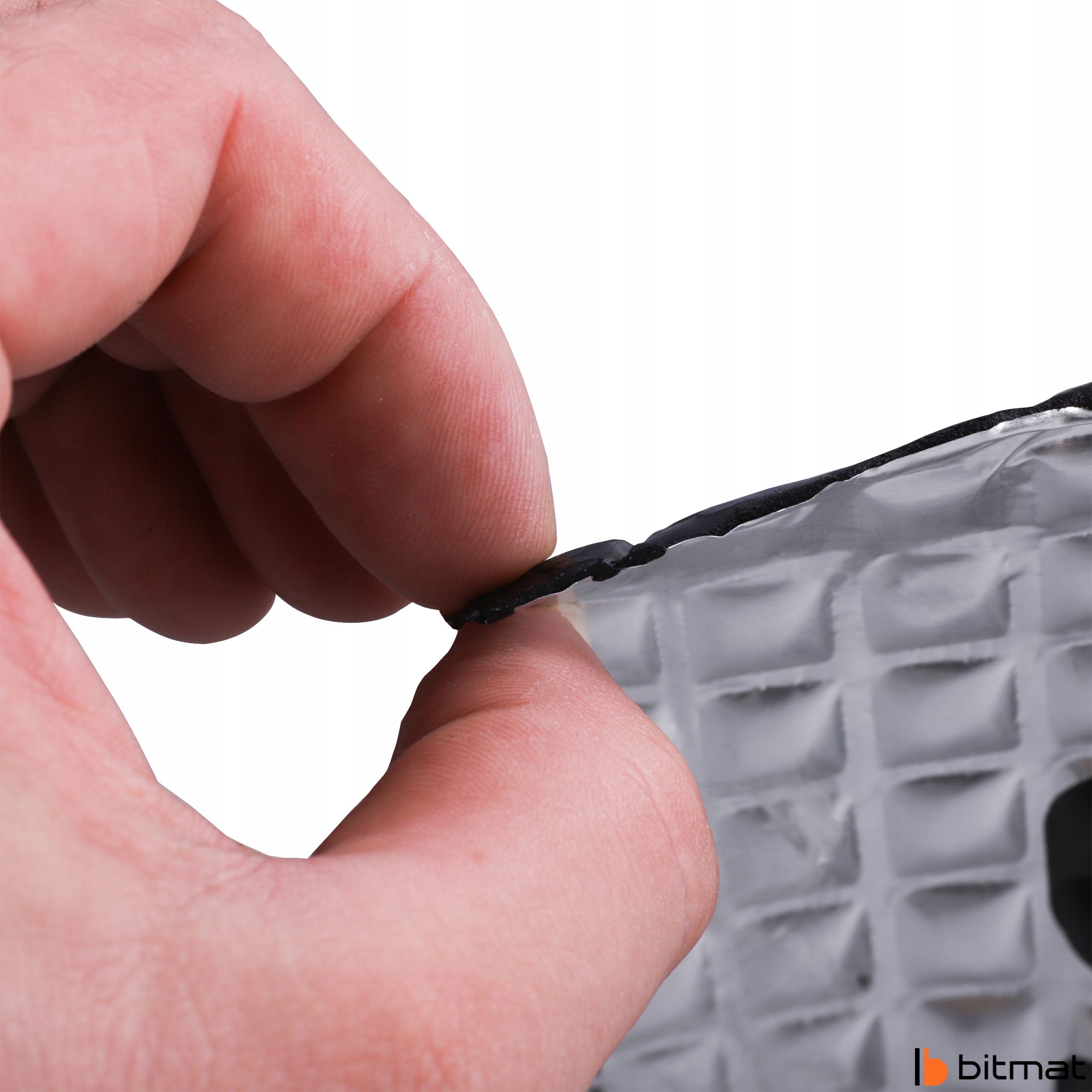 butyl mat ab-3s 3 мм використовується, коли звукоізоляційні машини пасажирські автомобілі, фургони та спеціалізовані транспортні засоби, наприклад. Кемпери. Продукт складається з високої якості бутил -маси високої щільності та шару холодного зігнутого алюмінію, , який також працює термічно. 4