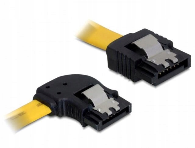 Кабель SATA Data II від Delock 0,5 м із металевими засувками під кутом ліворуч/прямо жовтий