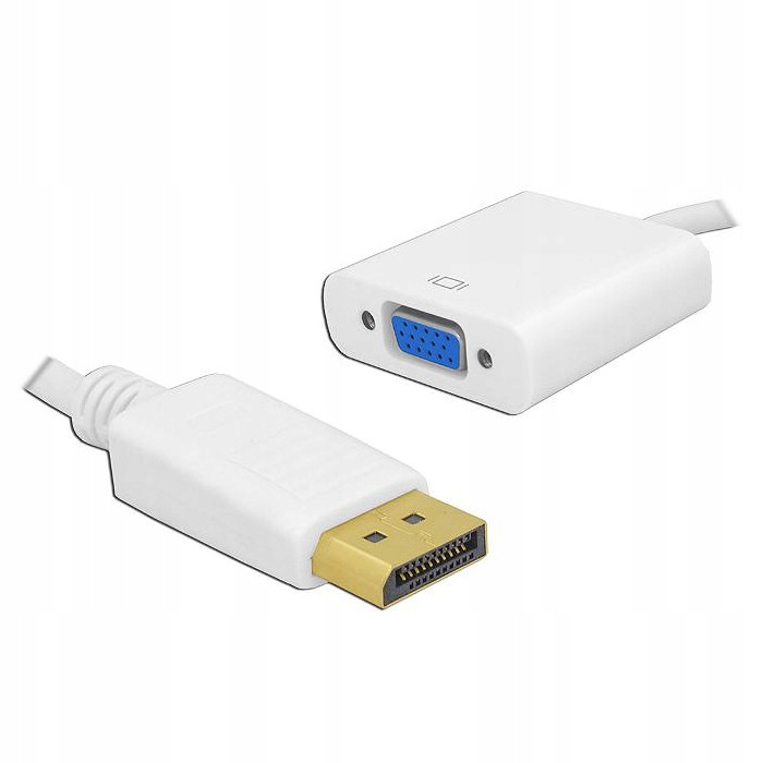 Адаптер дозволяє підключити пристрій з розеткою DisplayPort до монітора або іншого пристрою, оснащеного аналоговим портом VGA. Адаптер найчастіше використовується , коли ми хочемо підключити монітор із розеткою VGA, використовуючи розетку DisplayPort на відеокарті. для належної роботи вам знадобиться додатковий кабель VGA доступний у нашій пропозиції.