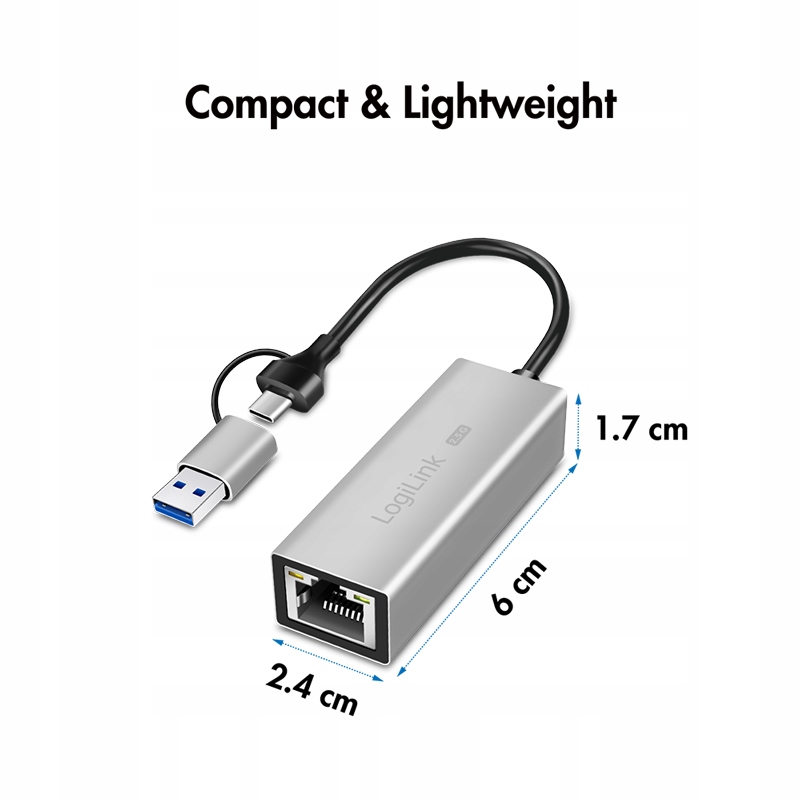 USB-A/C Адаптер до Ethernet 2.5G Logilink LAN RJ45 PC MacBook PS5 TV Box