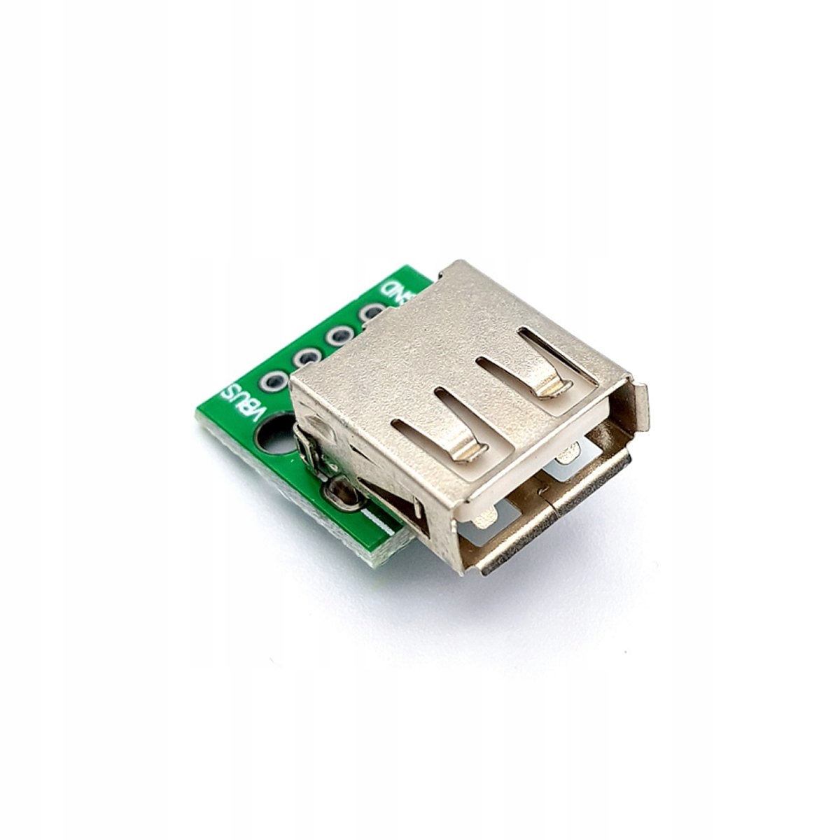 Адаптер-перехідник, гніздо USB A (гніздо) на контактний роз’єм із золотим контактом (2,54 мм) для макетних плат або універсальних роздруківок або для пайки проводів.