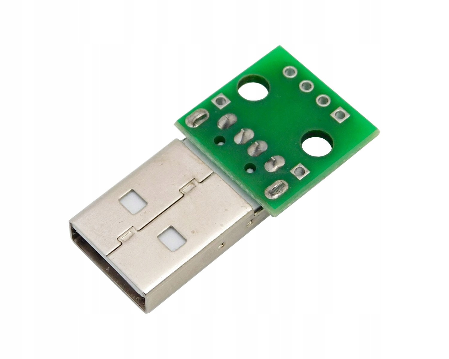 Адаптер-перехідник, штекер USB A (штекер) на контактний роз’єм із золотим контактом (2,54 мм) для макетних плат, універсальних друкованих пристроїв або для пайки проводів.