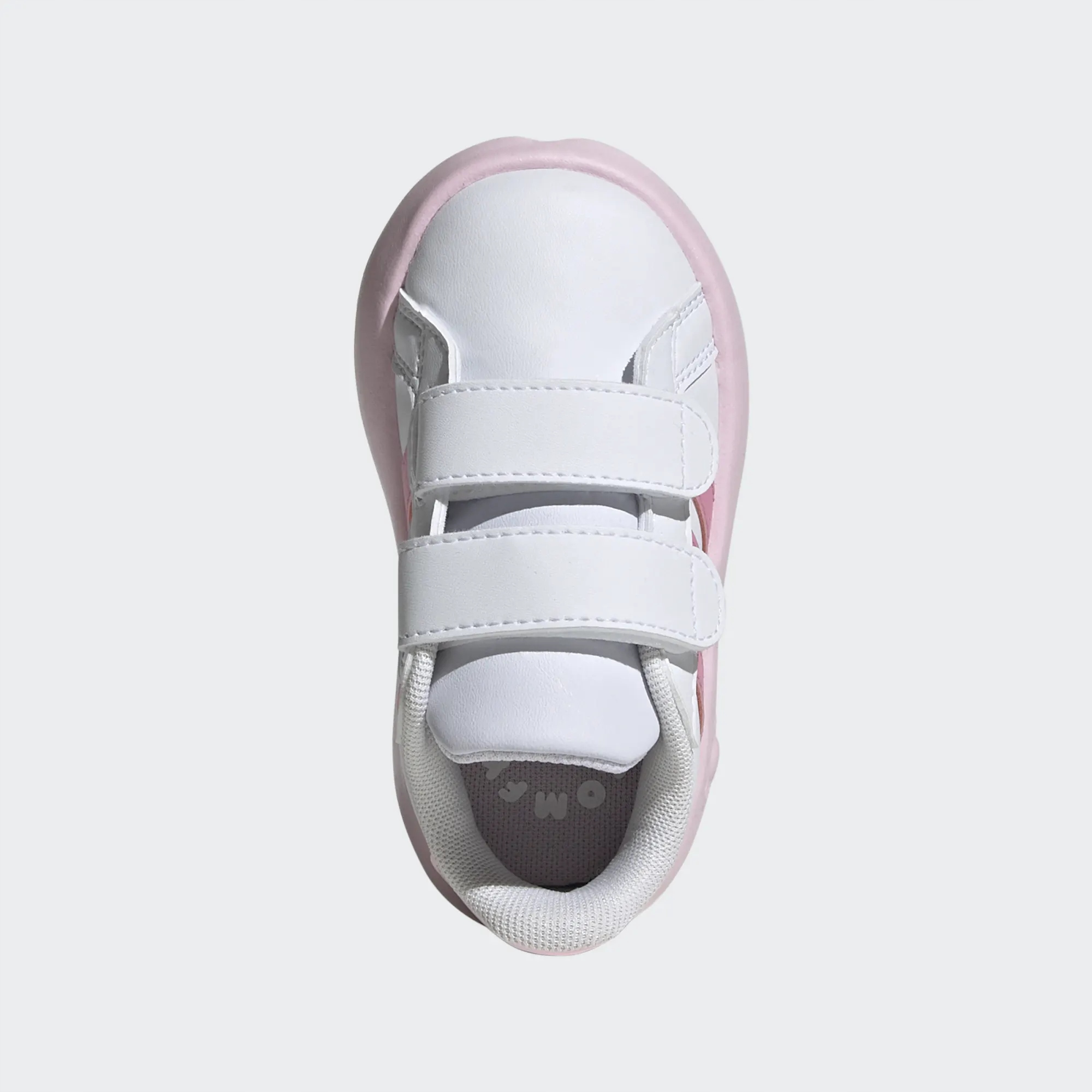 Якби ваш малюк міг говорити, він сказав би вам, наскільки він любить ці взуття Adidas Grand Court! Кріплення на липучках полегшують надягання взуття, а еластична підошва з пінопласту EVA робить маленькими задоволеними. Незалежно від того, повзають малюки, підтримують себе меблями чи роблять свої перші кроки, смішні кольори та класичні 3 смуги стають натхненням для життя, наповненим задоволенням.