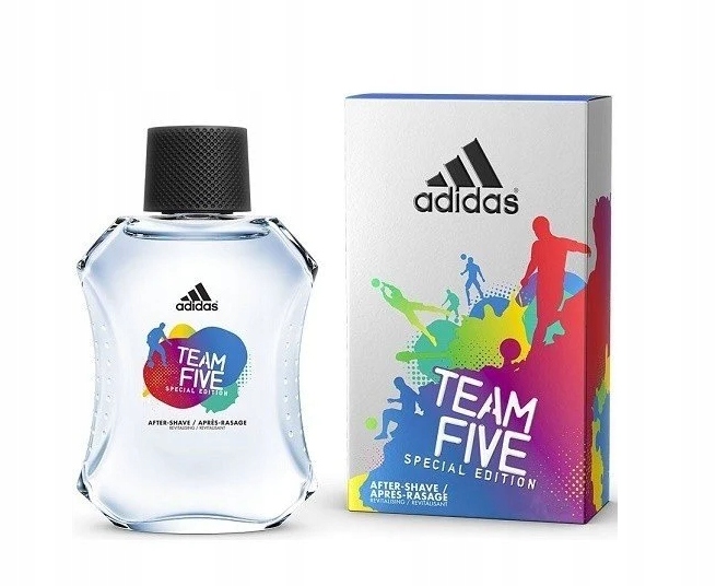 Аромат adidas Team Five простий і свіжий, впевнений у собі, сповнений радості, свободи та пристрасті. Верхні ноти аромату Team Five відображають фруктовий цитрусовий аромат соковитого яблука Гренні Сміт і освіжаючу свіжість лимона з зеленими нотами базиліка, створюючи захоплююче враження. Ноти серця сильно засновані на інтенсивному ароматичному дуеті лаванди та шавлії, підсиленому перцевою м’ятою, що збагачує цей чоловічий аромат. Нарешті, теплий бурштиновий ліс змішується з ароматом сосни звичайної, створюючи привабливу, магнетичну основу, підкреслену злегка солодкуватою ванільною ноткою, що робить її непереборно привабливою.