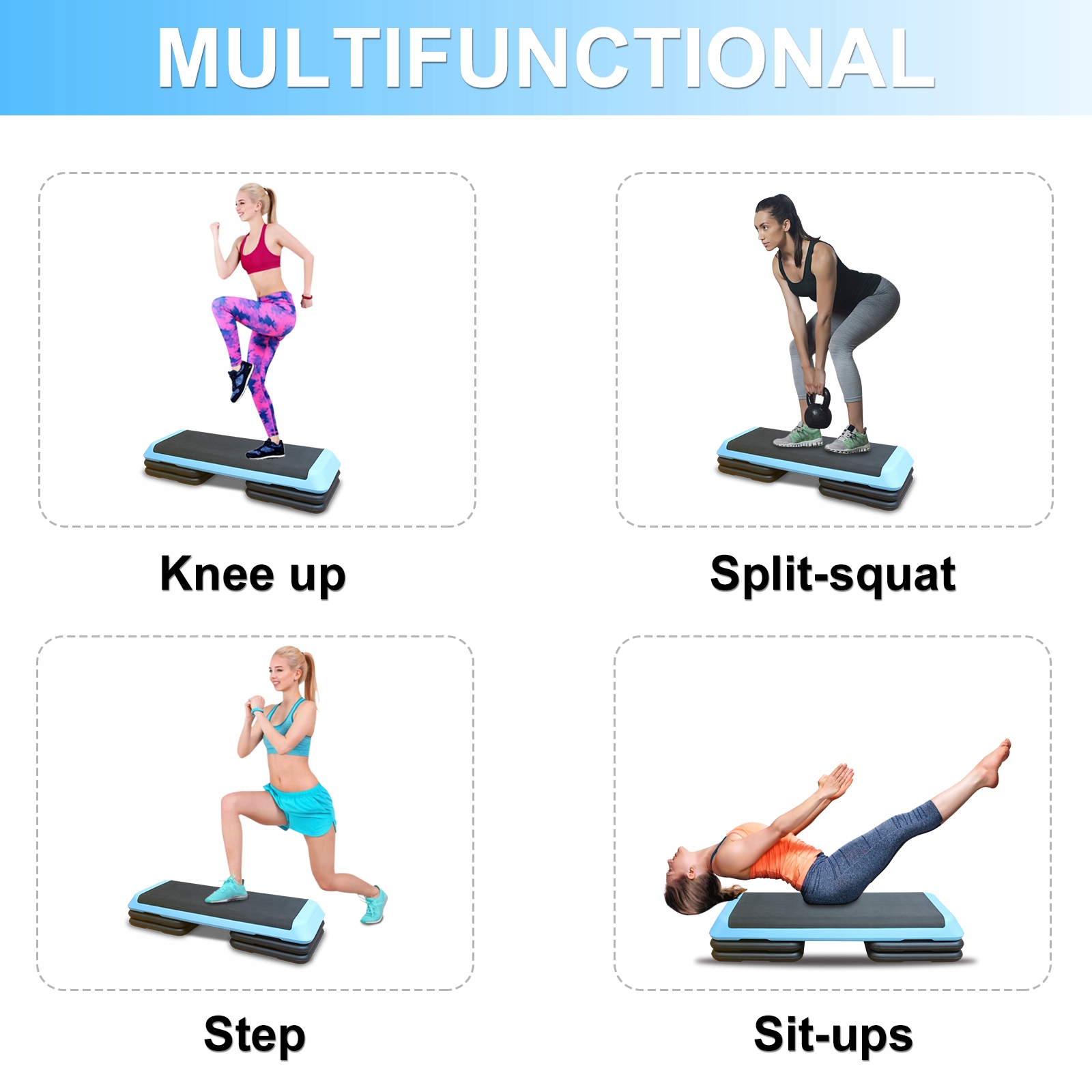 - Тренування спортзалу забезпечують аеробні тренування з низьким впливом, що допомагає спалити жир і перенести вашу серцево-судинну придатність на наступний рівень! Регульований аеробний крок може допомогти покращити рівновагу, гнучкість, спритність та витривалість. Він міцний, але легкий і пропонує безпечний та приємний спосіб поліпшити м’язовий тон та загальний добробут.