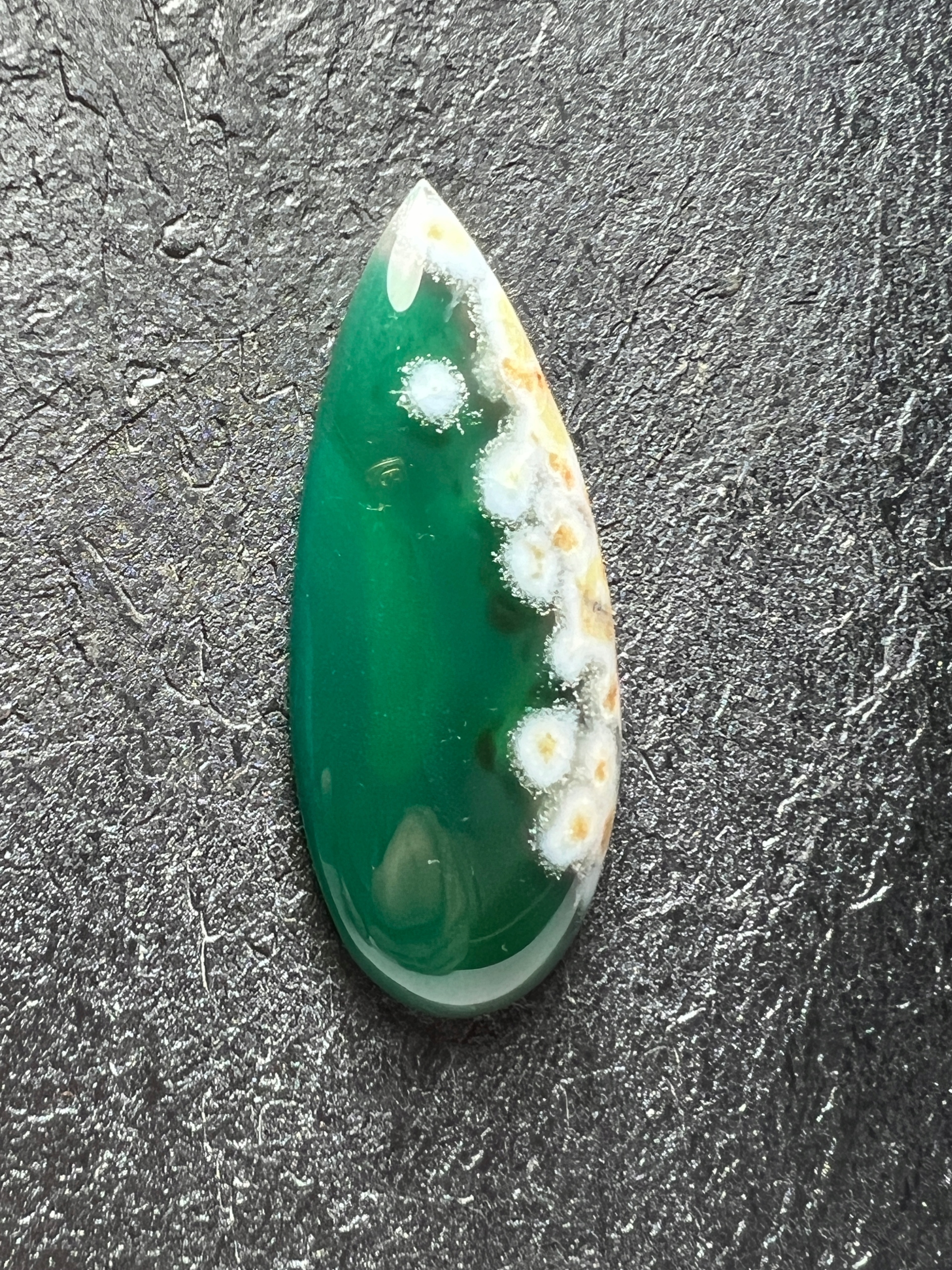 декоративний кам'яний агат із зеленим слізним кабохоном для ювелірних виробів 43,5x19,1x5,2 мм 1 ПК.