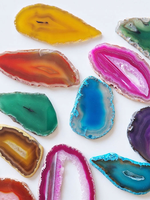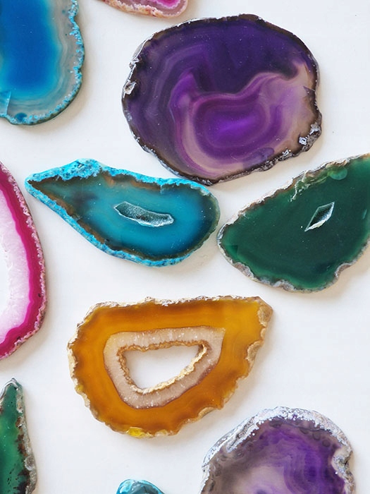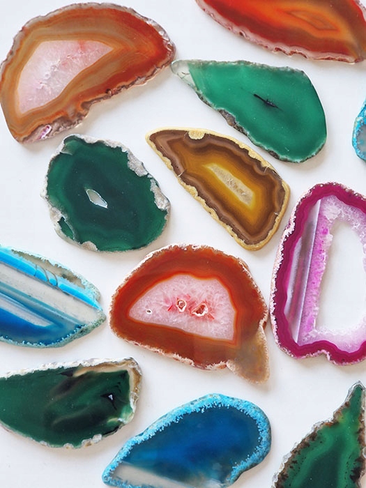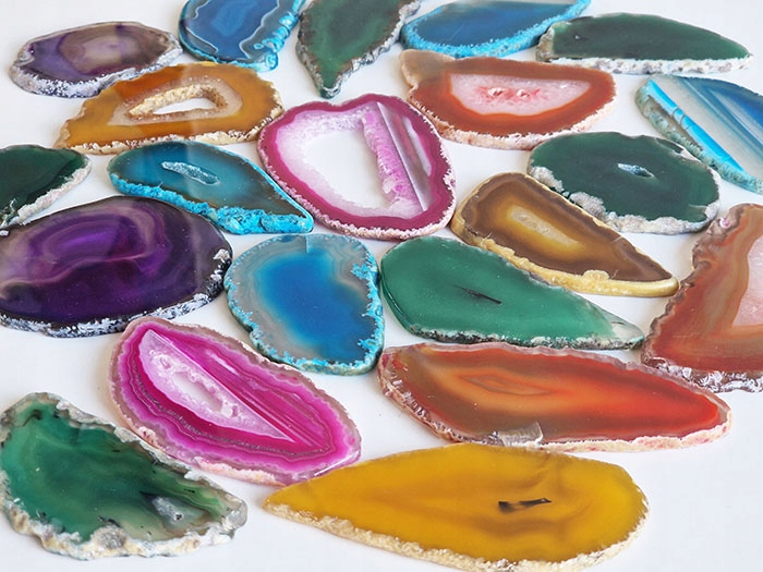 Зрізи агату, природного каменю, забарвлені у вигляді тонких плиток, полірованих з двох сторін.