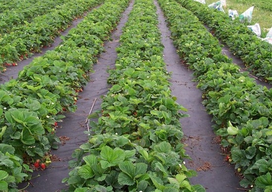 Чорний агротекстиль із вагою 50 г/м2, призначеним для мульчування ґрунту. Це дозволяє регулювати вологу ґрунту, з одного боку, уповільнюючи випаровування води, а з іншого шляхом проходження дощової води та рідкого добрива та значно зменшує прополку глінтвейних рослин. Мульчуючи ґрунт, ми зміцнюємо кореневу систему рослин, прискорюючи їх розвиток.