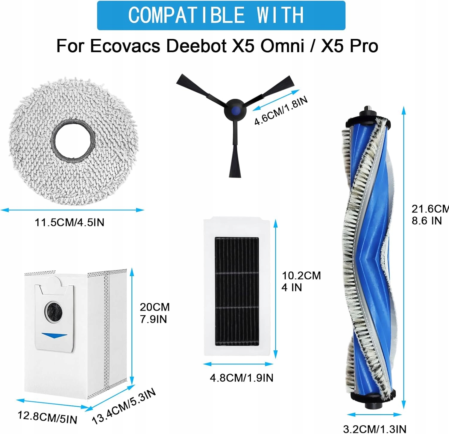 Ідеально сумісні: запчастини точно підходять для того, щоб легко доповнити оригінальне обладнання вакууму Ecovacs Deebot X5 Omni / X5 Pro Robot. Всі частини можна легко замінити без використання інструментів.