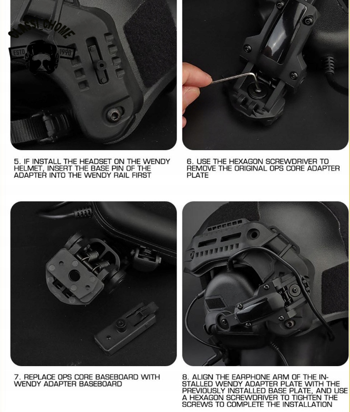Accessories for a tactical headphone set for OPS Core Arc/Wendy Wendy Fast adapter for mounting on the helmets Airsoft Hunting Airsoft Shooting Headphone set
