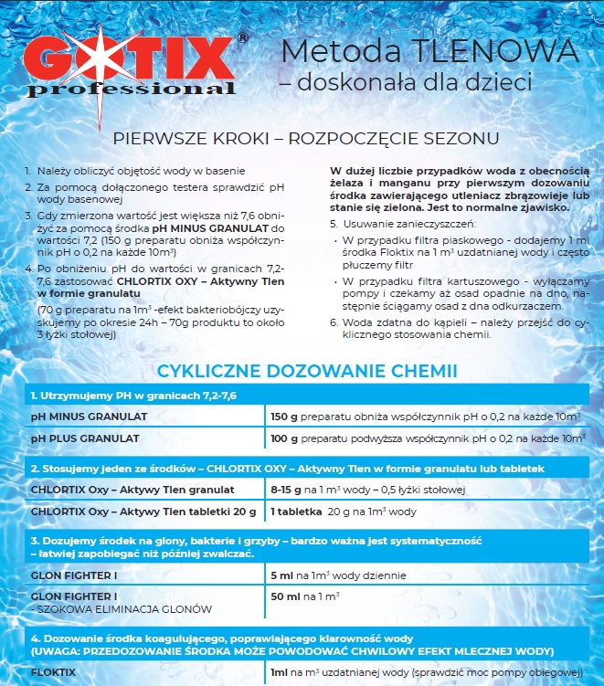 chlortix Oxy Active кисень може бути дозований безпосередньо з плавником або дозуванням. Також рекомендується відмовитися від замка дозування.