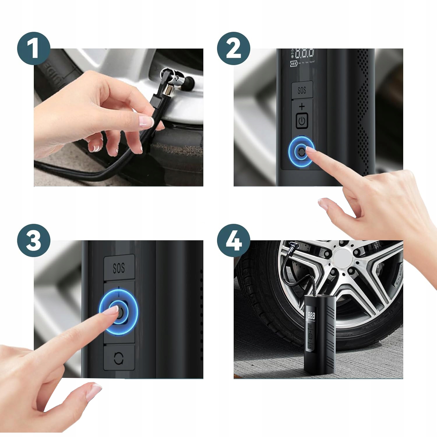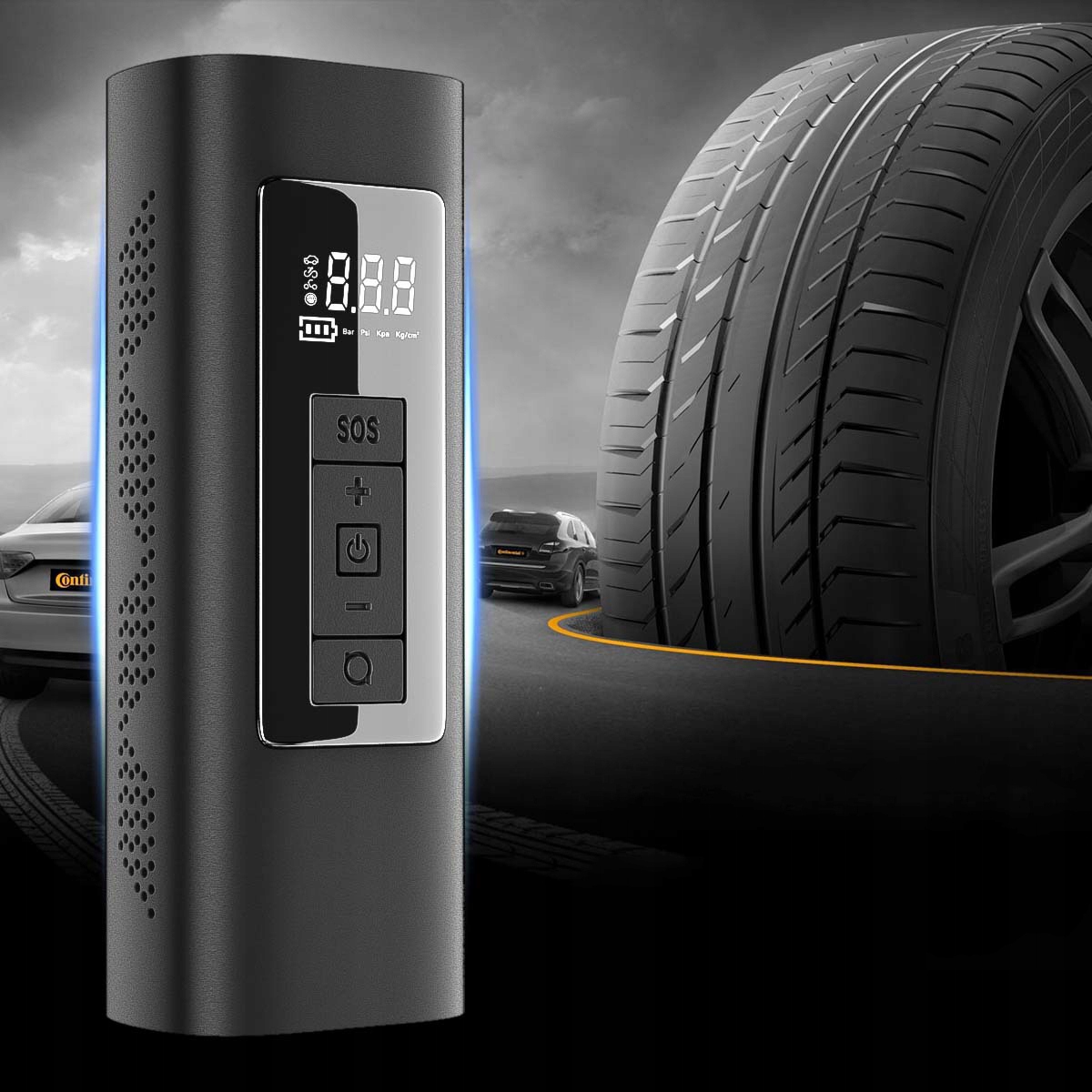 - Цей бездротовий насос для накачування шин також має функцію SOS та освітлення для допомоги в надзвичайних ситуаціях.