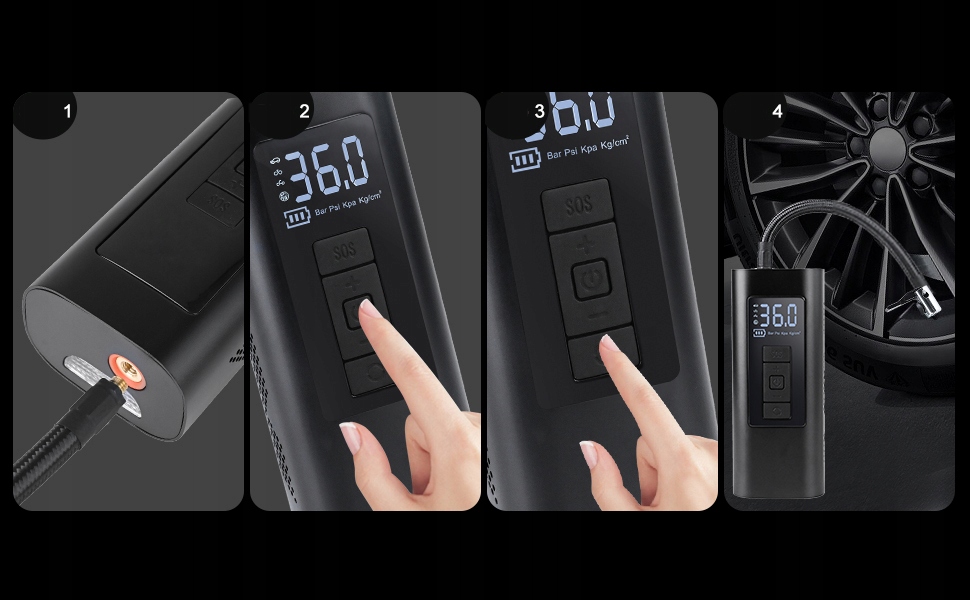 - Цей цифровий повітряний компресор для накачування шин має яскравий РК-екран, який дозволяє легко використовувати його навіть у темряві .
