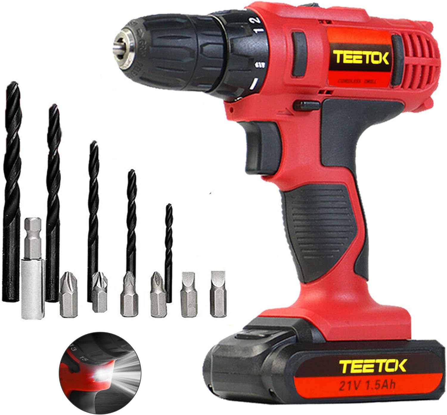 【Літій-іонний акумулятор】 Набір дрилів 21 В постачається з потужним літій-іонним акумулятором, який не має ефекту пам’яті та завжди готовий до використання. Оснащений тригером тиску зі змінною швидкістю, який може розвинути акумуляторну дриль до швидкості обертання 1400 об/хв.