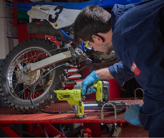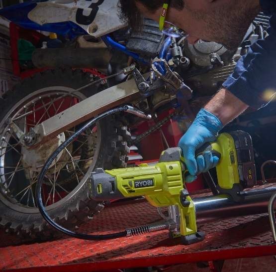Акумуляторний мастильний пістолет Ryobi R18GG-0ідеально підходить для змащування транспортних засобів і машин. Подає мастило зі швидкістю 210 г/хв і максимальним тиском до 690 бар для швидкого та легкого змащування. Його можна живити від патронів 400 г або заповнювати сипким мастилом до 450 г. Насадка довжиною 76 см встановлена на інструменті, захищаючи прилад від пилу та бруду. Блокування вимикачазахищає пристрій від випадкового ввімкнення. Спускний клапан сприяє вивільненню затриманого повітря.