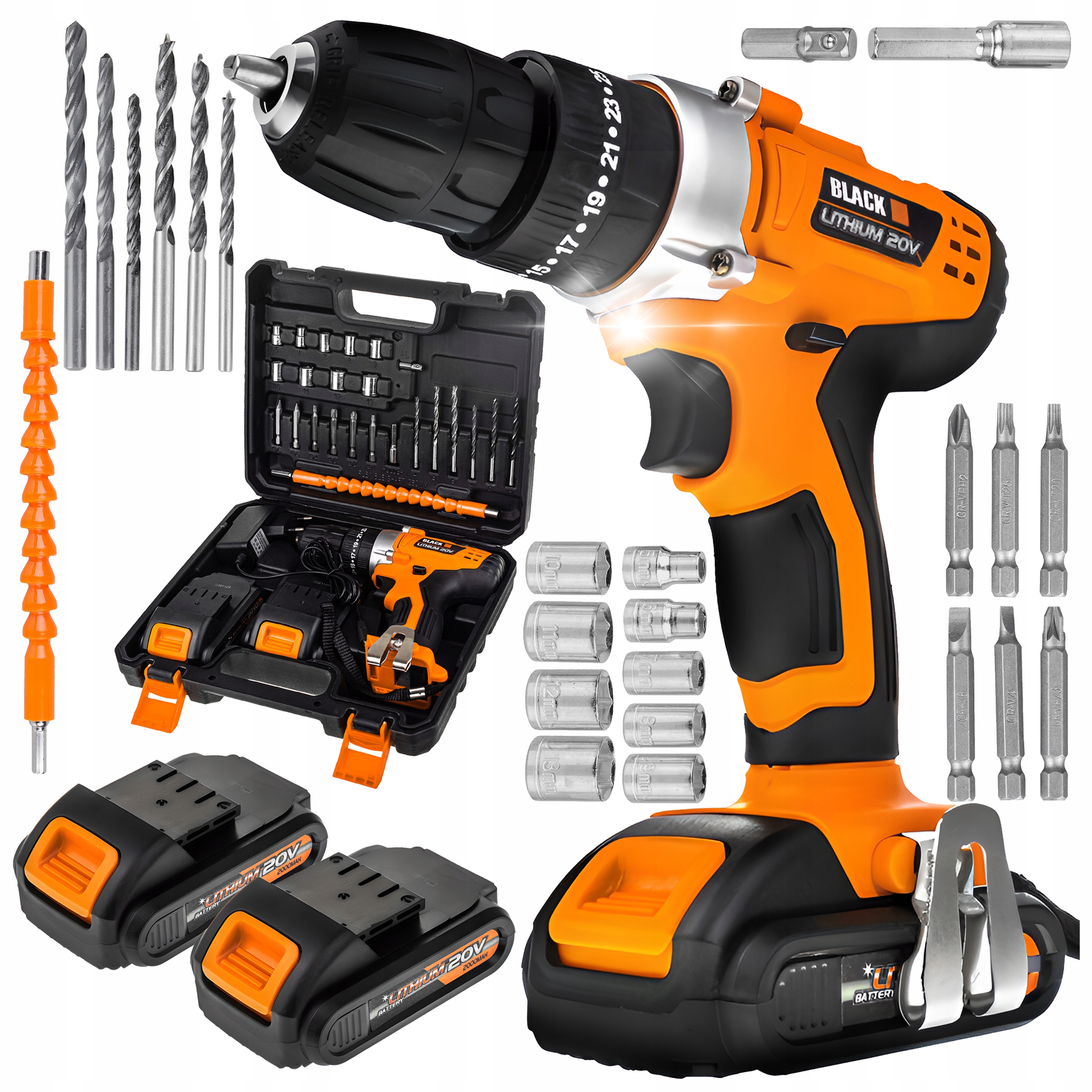 ✨ АКУМУЛЯТОРНИЙ ШУРУПОВЕРТ/ДРИЛЬ 20В зі світлодіодним підсвічуванням Black ✨
