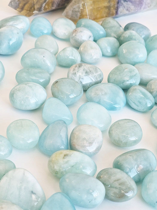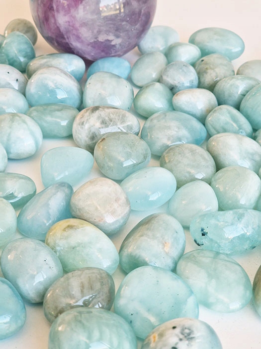 Це синьо-зелений різновид берилу. Його назва походить з латини і означає «морська вода». Створює враження «мокрого каменю», від чого гарно переливається.