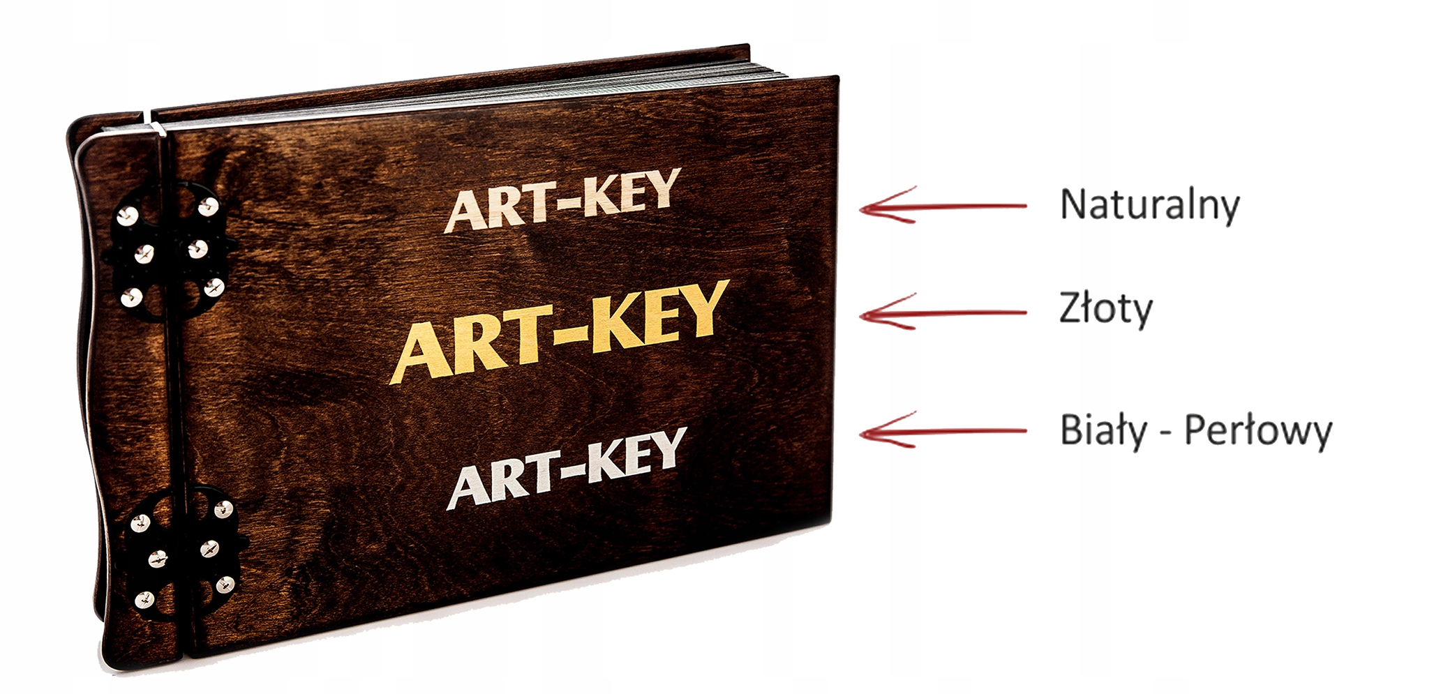 Ефективні петлі забезпечують елегантний вигляд і міцне з’єднання між обкладинкою та дерев’яним альбомом. Під час створення ми самі підбираємо відповідну петлю, але надаємо можливість вибрати її замовнику.