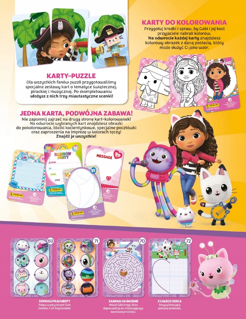 Крім того, 30 прозорі наклейки для багаторазового використання для збору. Захоплююча колекція колекторних карток, присвячена Габі, головній героїні популярного анімаційного серіалу для дітей, яка виграла серця молодих глядачів у всьому світі.