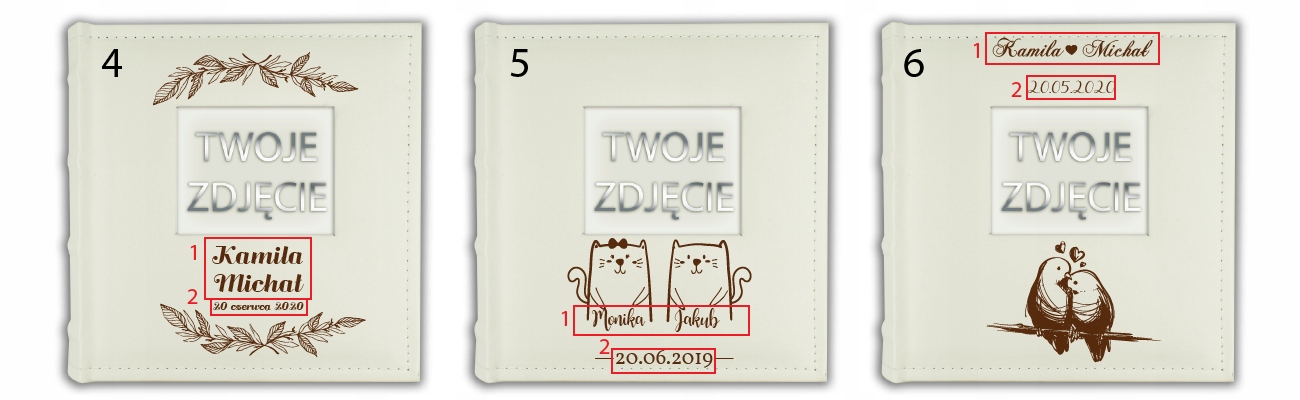 Після здійснення покупки не забудьте надіслати інформацію про обраний дизайн і дані, необхідні для персоналізації. Місце, що підлягає зміні, позначене червоною рамкою.