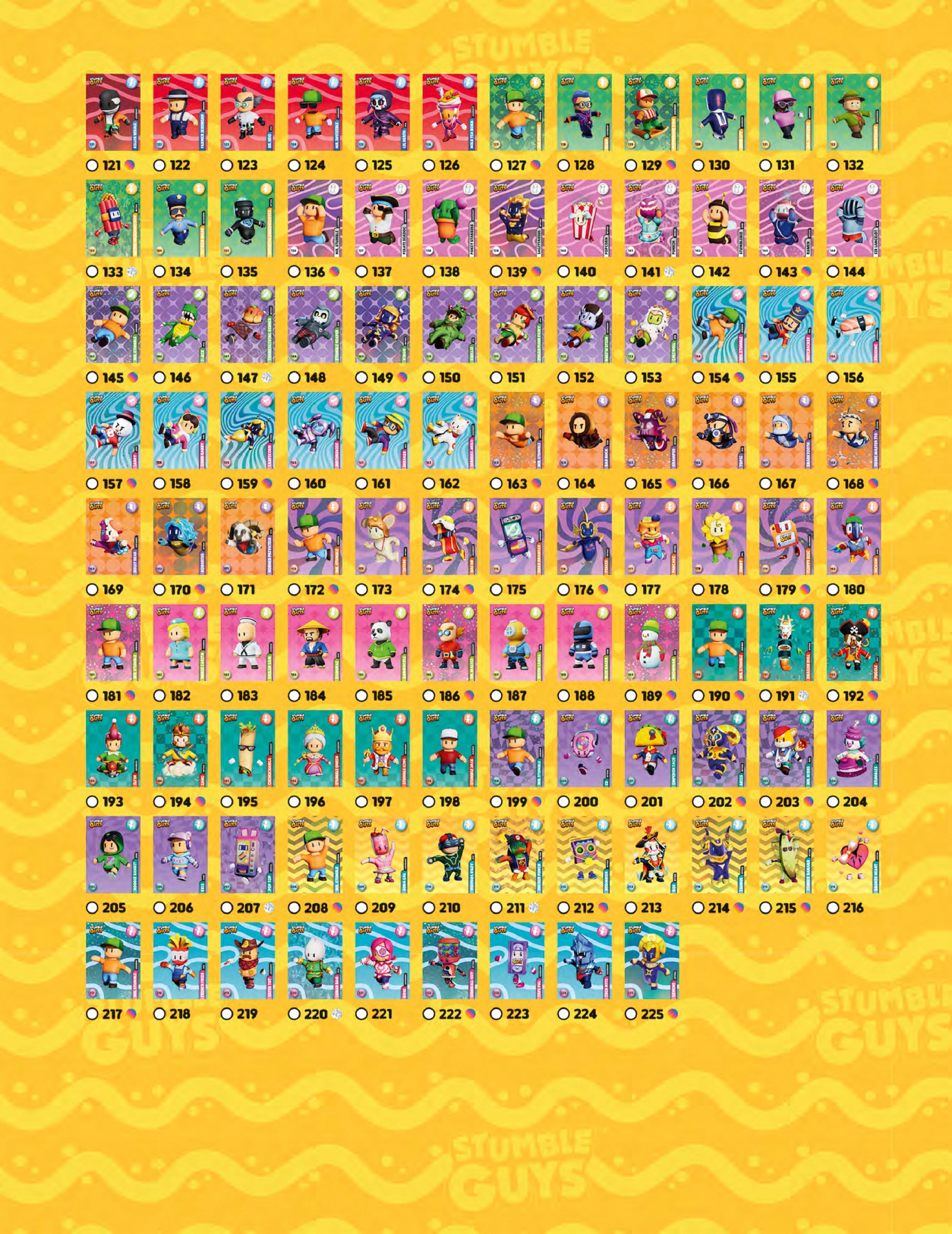 Ця унікальна колекція містить дивовижні картки з дивовижними ефектами, які вас здивують. Колекція Huys Tumble залежить від 225 карток та персонажів з ваших улюблених відеоігор, таких як MR. Спотикання , супер банана і вбивця зернових , а також фантастичні пози, які ви можете побачити в грі.
