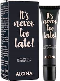 Alcina Ніколи не пізно!Бальзам проти зморшок для шкіри навколо очей. Бальзам для повік — делікатний, але дуже ефективний продукт, який розгладить чутливу шкіру. Ваше обличчя знову стане сяючим, і ви виглядатимете відпочилим.