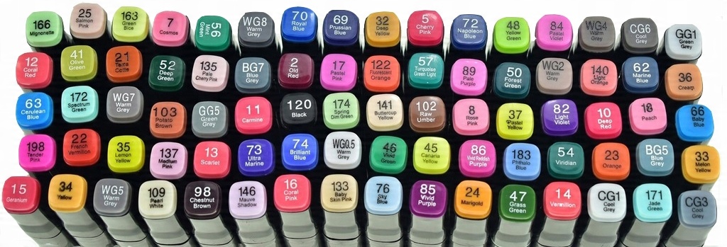 Набір з 80 маркерів у насичених, різних кольорів. Відмінна пігментація алкогольної чорнила, що міститься в маркерах, гарантує, що малюнки, зроблені з ними, будуть насичені, чіткі і не поступилися довго. Деталі.