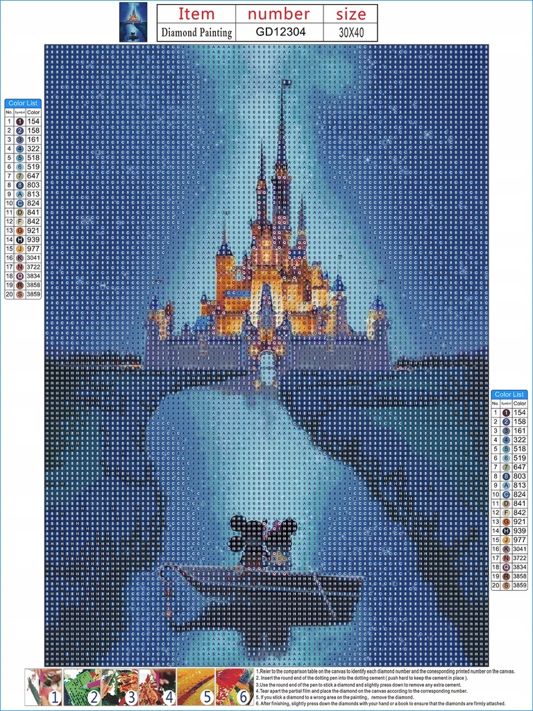 - Канва з надрукованим малюнком покритий спеціальним клейовим шаром для склеювання діамантів